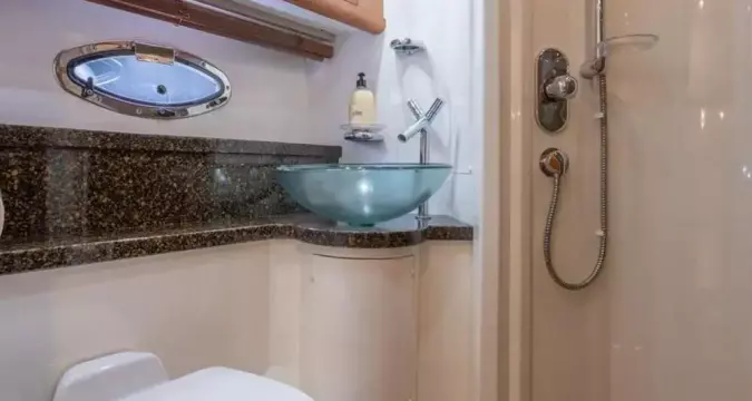 - Owners cabin at the bow fitted with an ensuite with a shower
