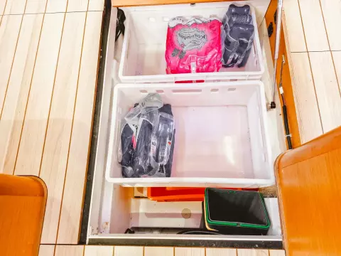 - Air conditioning (16,000 BTU in saloon, 12,000 BTU in forward and aft cabins)
