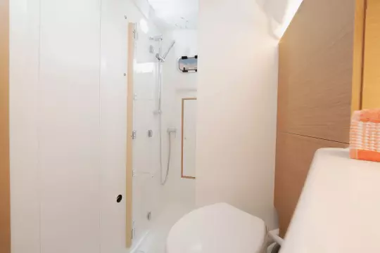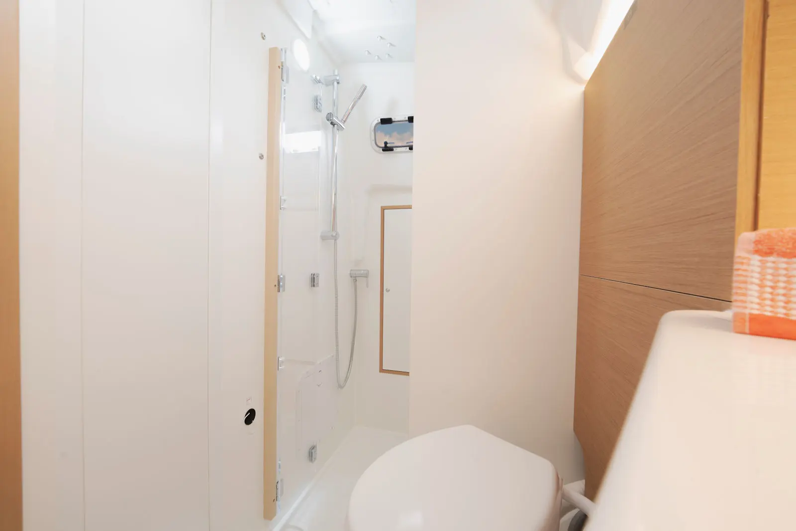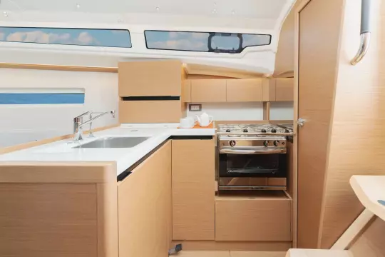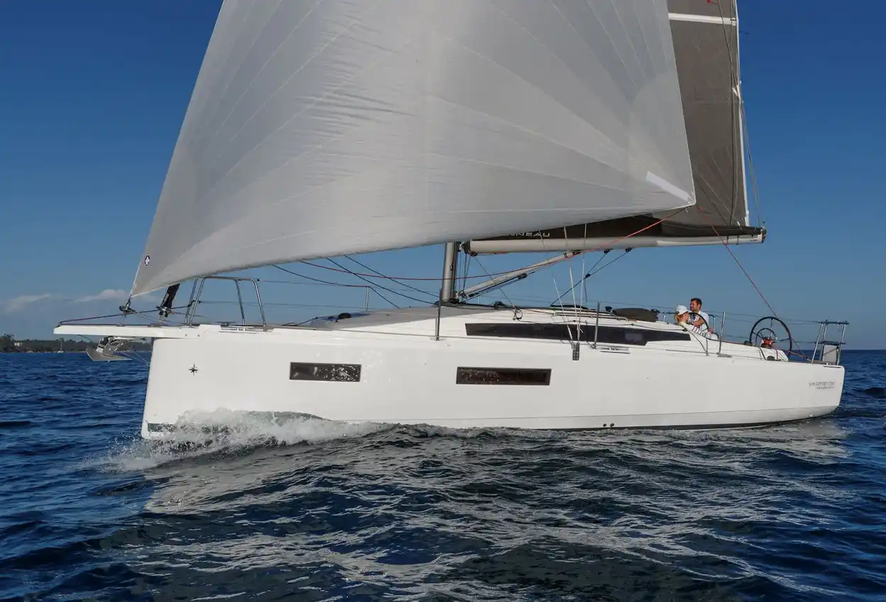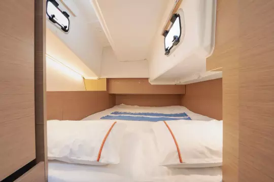 2 Cabin, 1 Head version with dark oak floorboards and Grey Cedar Interior. Upgraded upholstery. Full trim level 'Preference'. Downwind Pack. Full Offshore Electronics Pack including autopilot.