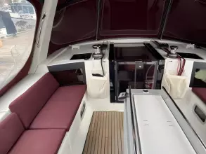 - 1 Liferaft locker under helm seat, in cockpit bottom (0.80 m x 0.40 m x 0.58 m / 2'7'' x 1'4'' x 1'11'')