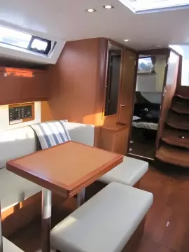 The Oceanis 45 is an exceptionally balanced sailing yacht. She is a very well-proportioned cruiser with clean artistic lines and a sophisticated design providing world-class yacht sailing performance. She features a very stable seaworthy hard chine hull and a deck plan that clears space and simplifies maneuvering. Designed to combine sailing speed and the pleasure of living on board.