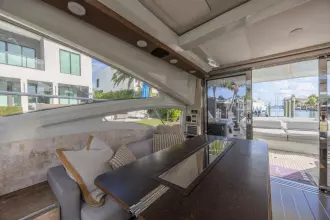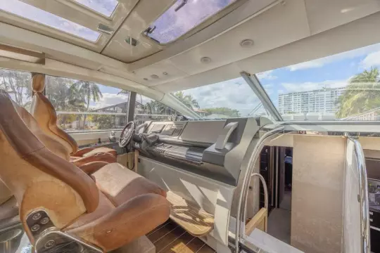 The cockpit on this Azimut 68S is the perfect blend of functionality and luxury. With ample seating and a state-of-the-art helm station, it offers everything needed for a smooth and enjoyable cruise. The open space allows for easy navigation, while the high-quality materials and finishes add a touch of sophistication. This area is perfect for both the captain and guests to enjoy the voyage together.
