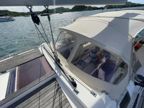 Sun Odyssey 51 from 1992, built by the Jeanneau shipyard with four cabins, transformed into three cabins. Only two owners since its commissioning, never used for charter.