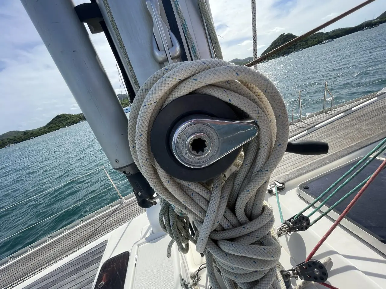 Two Harken winches 2-speed power ratio 45 at the foot of the mast