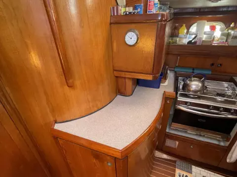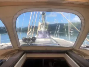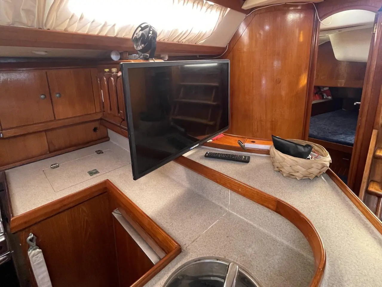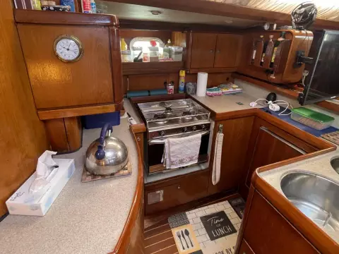 Fully equipped, this sailboat is autonomous and ready to set sail.