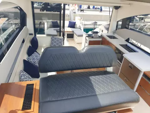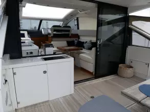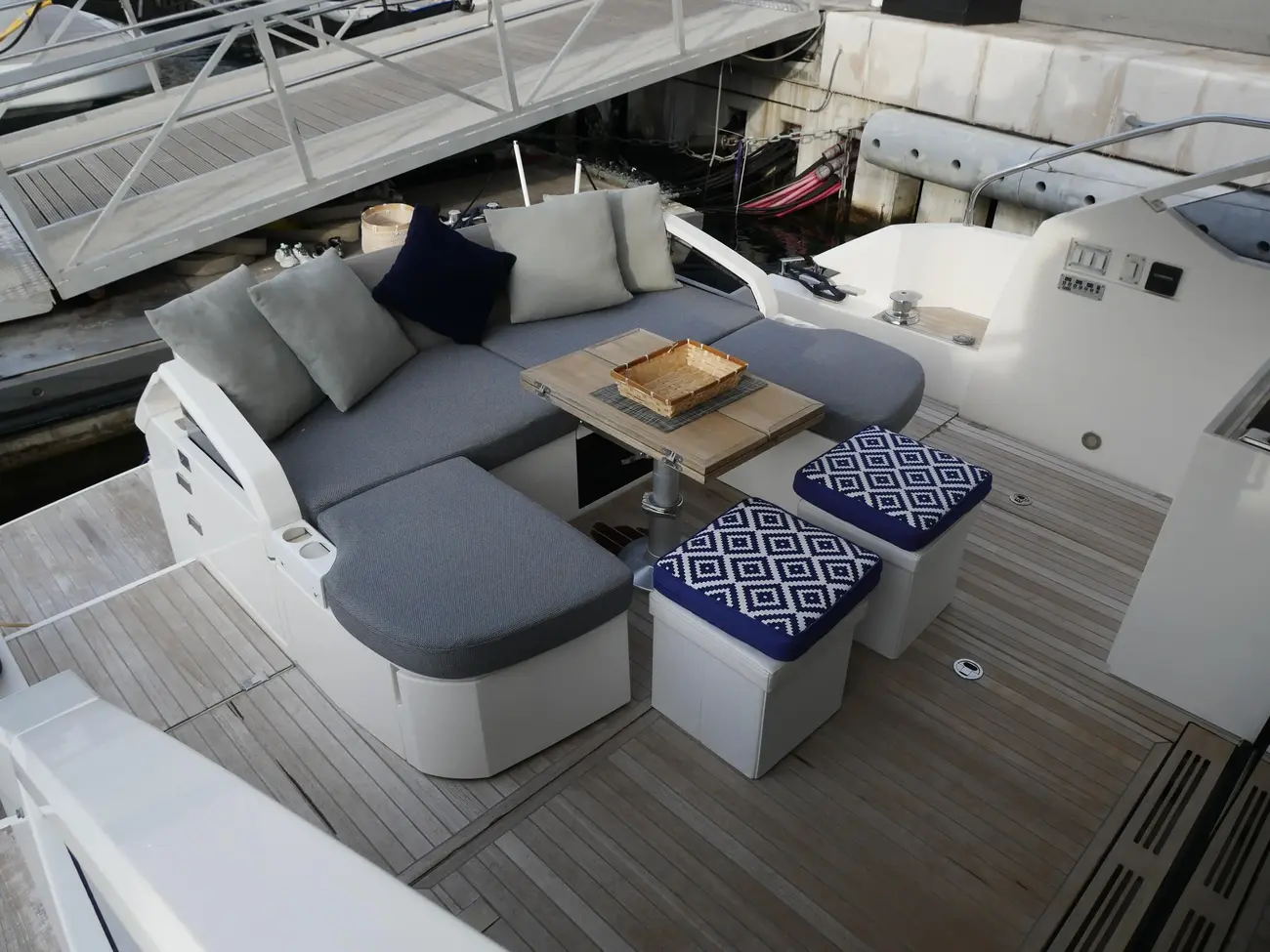 A superb Fairline Targa 50 GRAN TURISMO with exceptional design and finishing by the sought-after British brand Fairline. The spacious interior is bright and modern with a sliding hard top and extended glazing above and below decks. The salon flows harmoniously out onto the aft deck, where guests may dine alfresco with ample seating, which converts into a large sun pad with ease. The foredeck offers a further double sun pad, while the extended swim platform provides effortless water access.