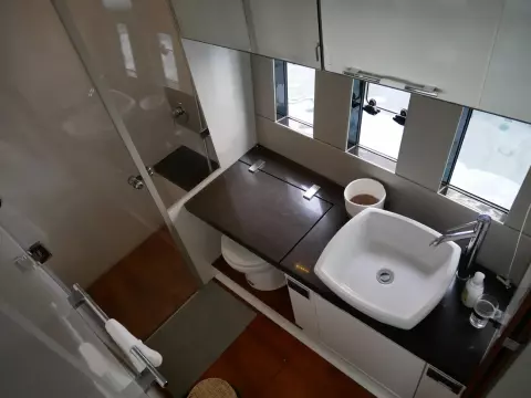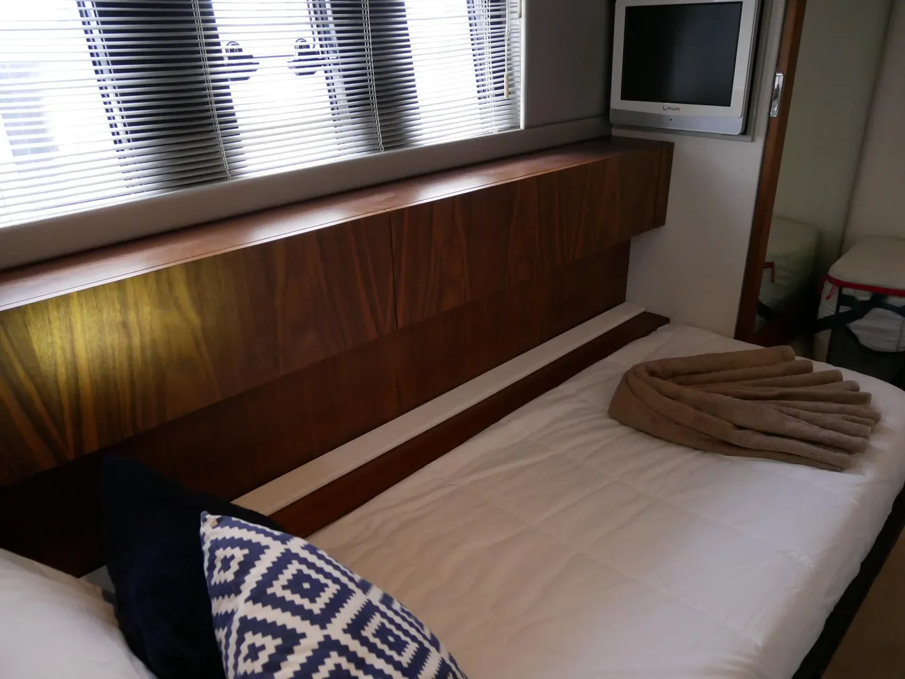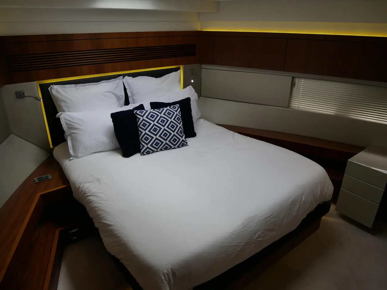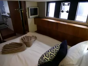 Anphica features 3 luxury cabins for up to 6 guests. The master cabin is forward with a centre king-size bed and en-suite facilities. Two further cabins have twin side-by-side beds with the option of converting them into doubles. The starboard guest cabin offers en-suite facilities which can also be accessed from the lobby as a day head. A further single crew cabin or for storage is aft.