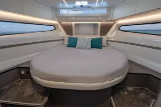 2025 model, brand new and in stock now and available for a quick delivery. Available with twin Yamaha 200hp outboards with electric steering and joystick control. This comfortable and safe cruiser comes equipped with the Garmin navigation pack, autopilot, VHF, Zip wake auto trim tabs, ceramic hob, ‘U’ shape cockpit seating with folding Portside bench, Fusion audio pack and much more. Available with full factory warranties and includes commissioning. Viewings 7 days a week. Pictures are stock images and not of the actual boat.