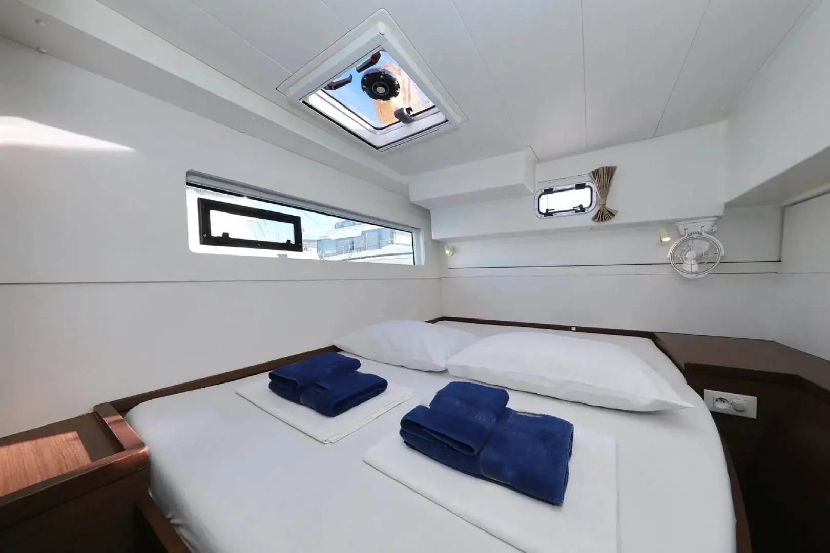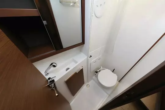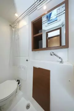 - 2 skipper cabins with single bed, hanging lockers
