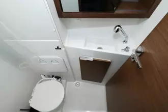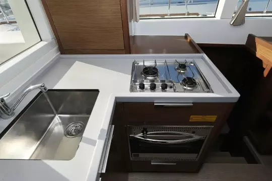 - L-shaped saloon settee with saloon table that can be converted to 2 additional berths