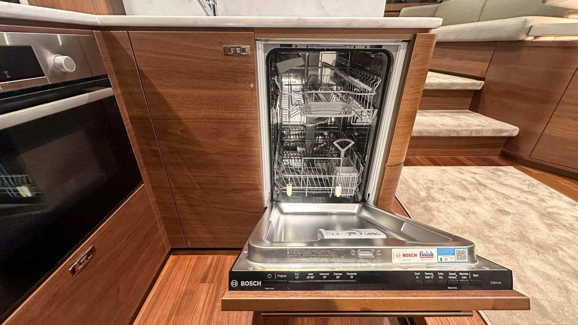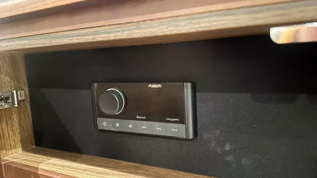 - Fusion systems and speakers in saloon, owner's cabin, and flybridge