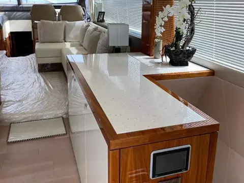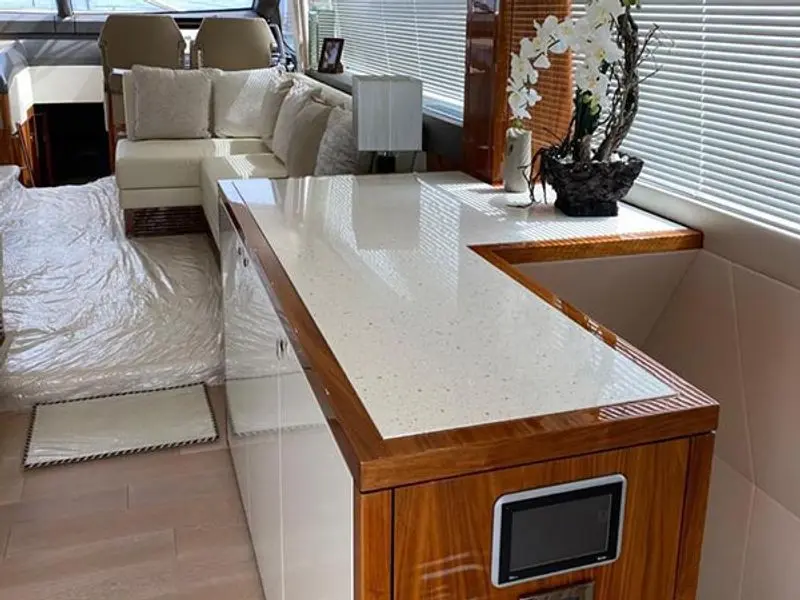 - Flybridge Wetbar exterior doors to be finished in white GRP in lieu of the standard teak.