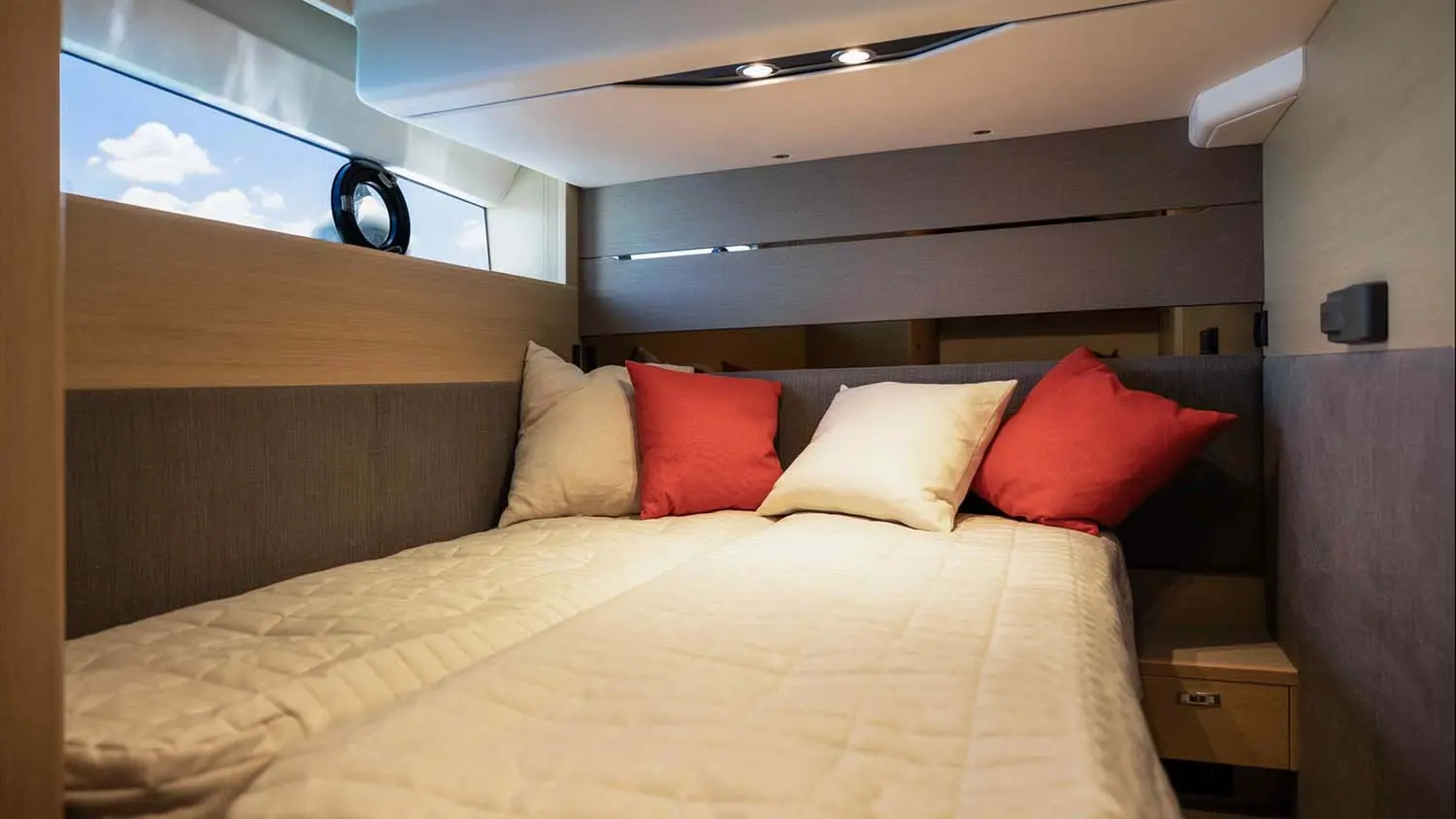 - The starboard cabin is converted into a double berth, equipped with an electric sliding mechanism inside the berth.