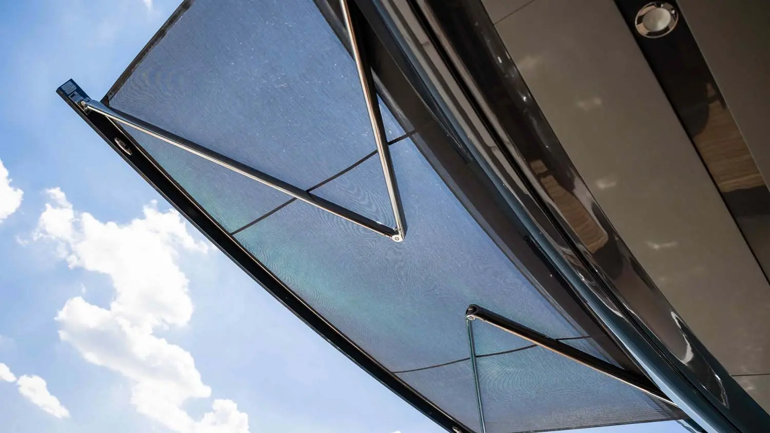 - Electrically operated sun canopy aft of cockpit