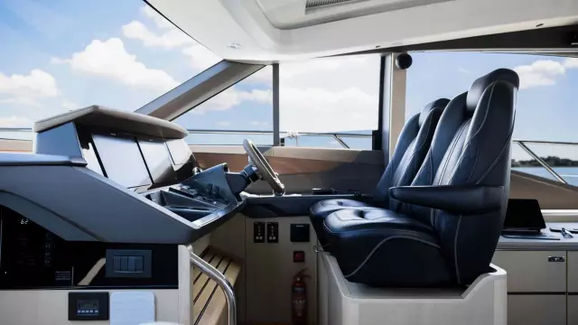 - Second helm station in cockpit (engine control and emergency stops, thruster control)