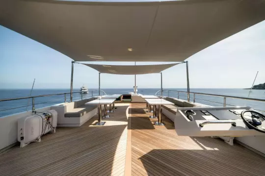Built and designed by AB Yachts, the 44.6m FAST & FURIOUS was delivered in 2016, boasting absolute power and elegance for an unforgettable experience. Her immaculate interior with patterned woods and neutral warm colours makes one of the most compelling and admirable yachts in her sporty category. She comfortably accommodates up to 10 guests across five spacious staterooms, including a Master suite with drop down balcony. The exterior offers entertainment and lounge spaces from foredeck, sundeck to beach club, stylish new party deck and bar. The lower deck offers a Gym & Office space. For the speed lovers to cruise between port of calls fast, she is a unique Superyacht to perform fast in stability. Powered by 3x MTU M94 engines, FAST & FURIOUS is cruising comfortably at 37 knots, reaching a maximum speed of 42 knots.