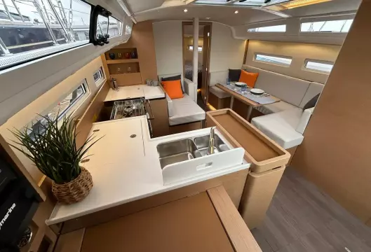 To design the Sun Odyssey 410, Jeanneau reached out to long standing design partner Marc Lombard, who was assisted by Jean-Marc Piaton. Together, they delivered on the challenge of bringing the classic Jeanneau styling into a modern yacht. Like the 440 and 490, the Sun Odyssey 410 features a generous beam and walk-around deck, ensuring life on deck is comfortable and spacious, either under way or at anchor.