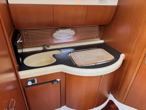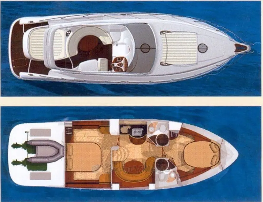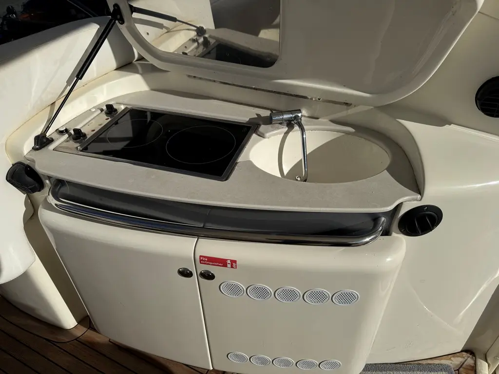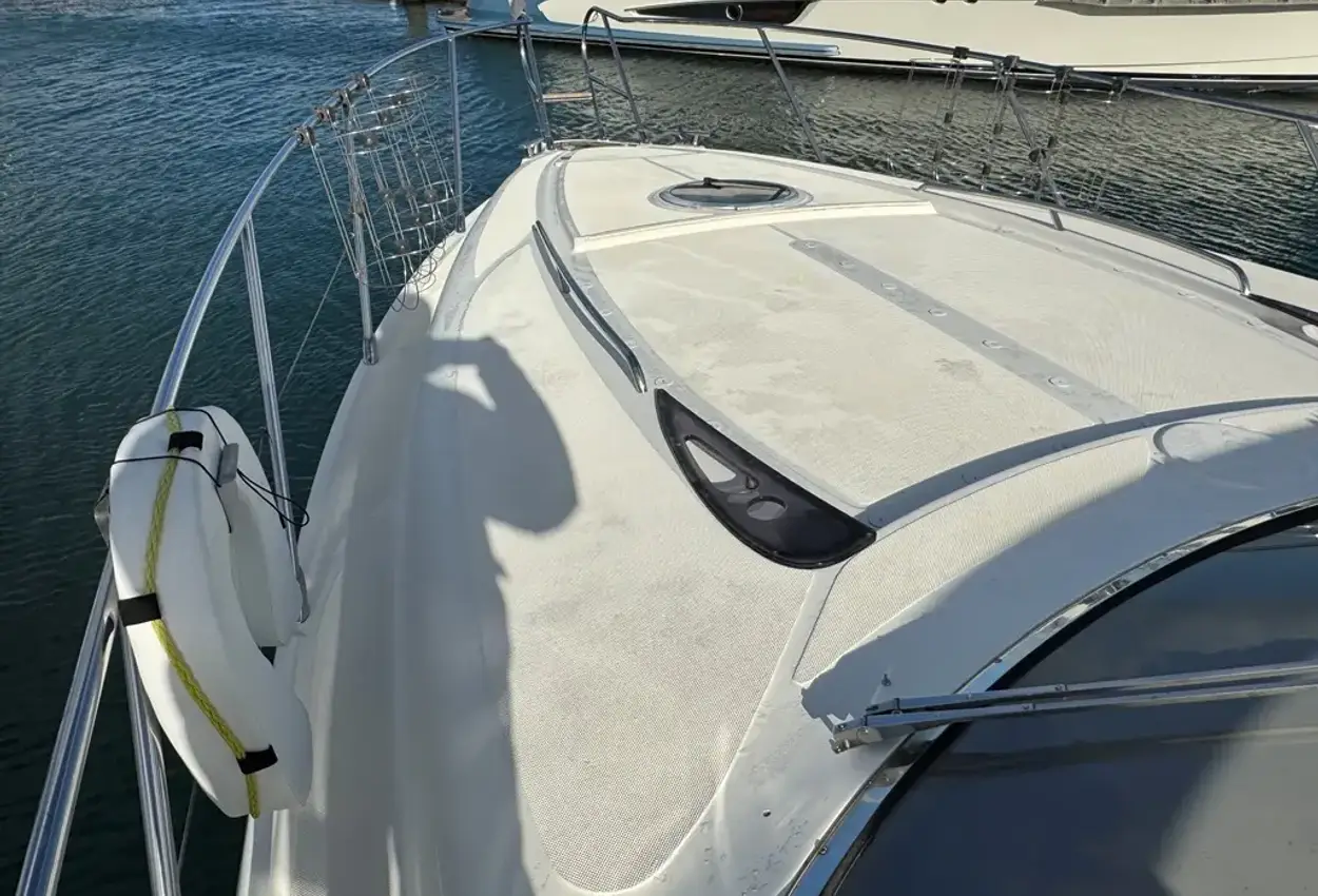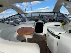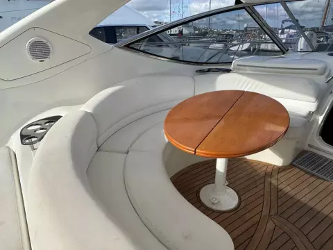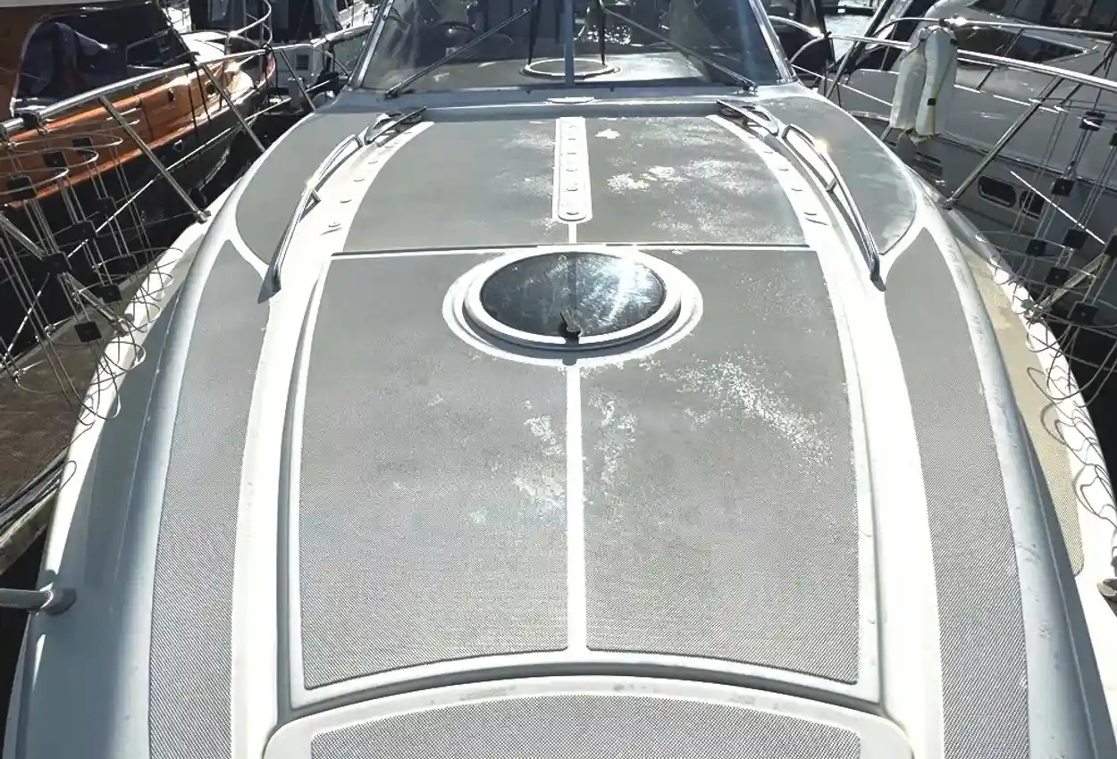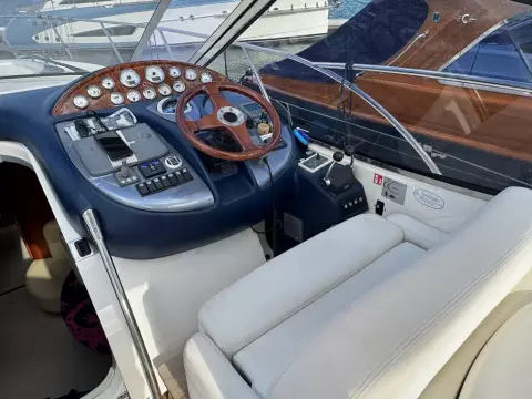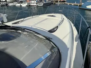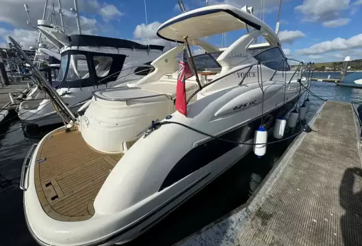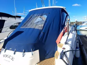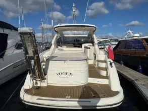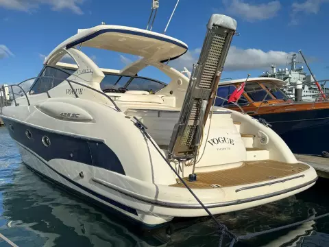 A lightly used example of this spacious and well designed sports cruiser built by Azimut in Italy in 2008 with a 2009 hull # and launched in 2010. With a very clever and extremely versatile design including a huge owners cabin, en-suite guest cabin and a garage for your tender and water-sports toys, this boat has many features you would expect to find on much larger craft. Combined with her kindly sea-keeping qualities and with the build quality one would expect from such a reputable yard, ‘Vogue’ will appeal to a wide range of buyers looking to cruise in complete comfort and at speed. Owned by a UK owner - this motor yacht is deemed UK VAT PAID. She has recent new synthetic teak to the bathing platform and recent canvas cockpit covers. The package is complete with 5KVA generator, passerelle for Mediterranean visits, aircon (needs a service), diesel heating system, and a huge sunroof for light & airy boating. A great sports boat package - serviced, antifouled & prepared (February 2025) for the 2025 season. Call us for a copy of the high resolution pictures.