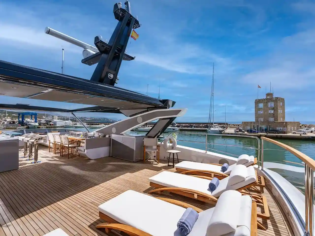 The innovative X-TENDtm sunbeds allow for multiple arrangements, likely to be the key entertainment space on board. The sunbeds can be operated electrically to either raise upwards to face the covered cockpit seating area or lowered to face aft at Beach Club level, perfect for relaxing with family and friends at any time of day.
