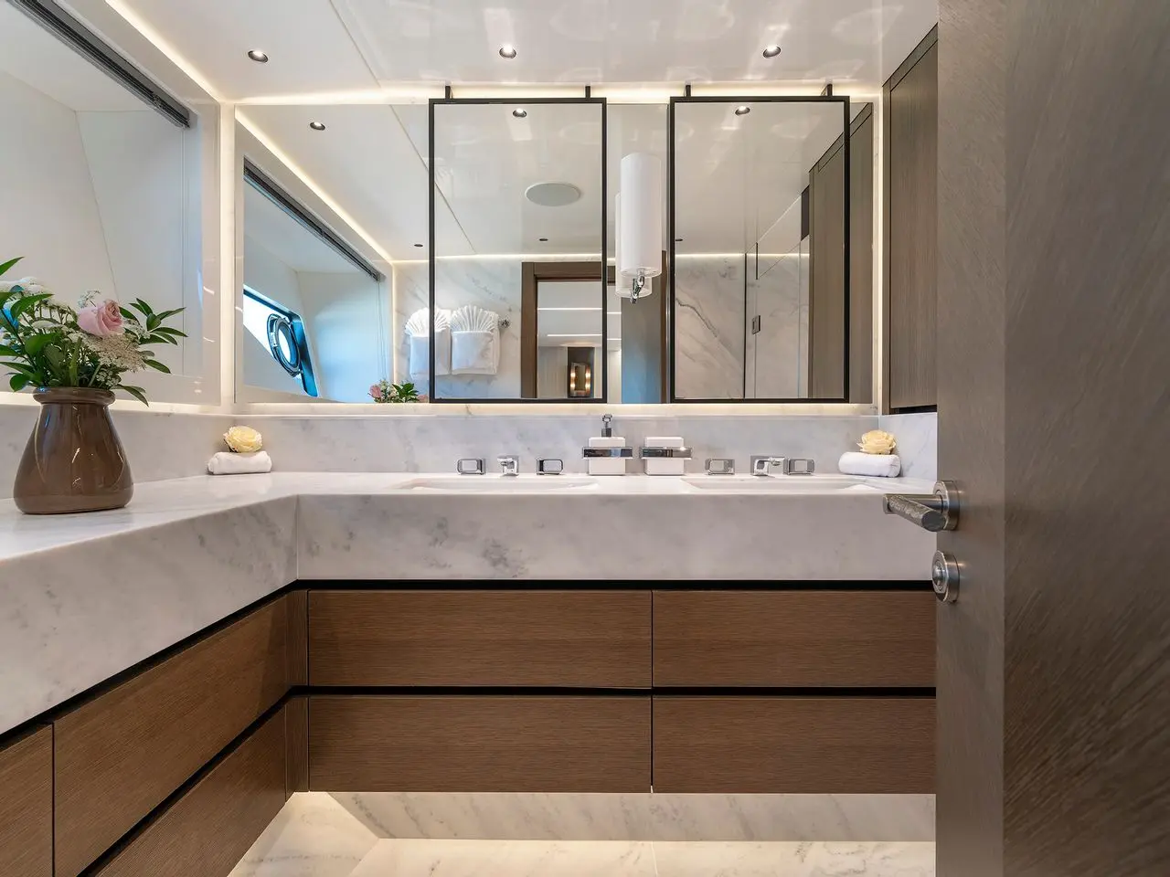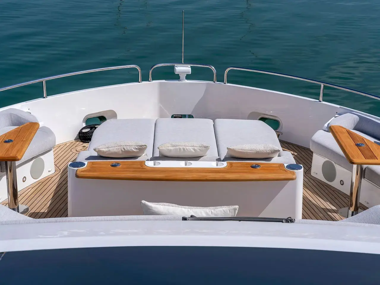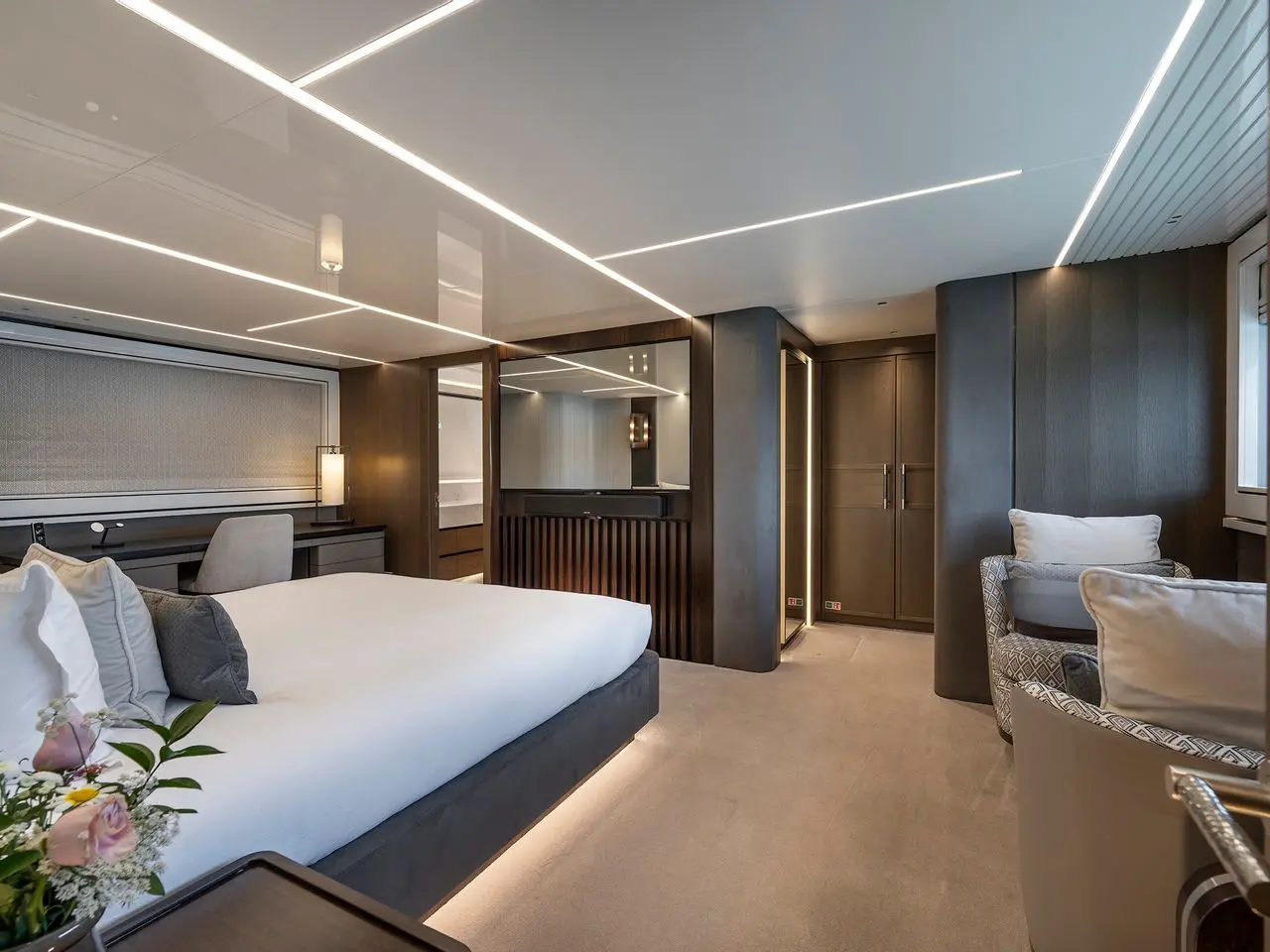The unique main deck, penthouse style saloon measures 8.8m in length by 5.6m in width, and luxurious staterooms offer a new design direction and materials selection, providing elegant interiors to enchant any owner.