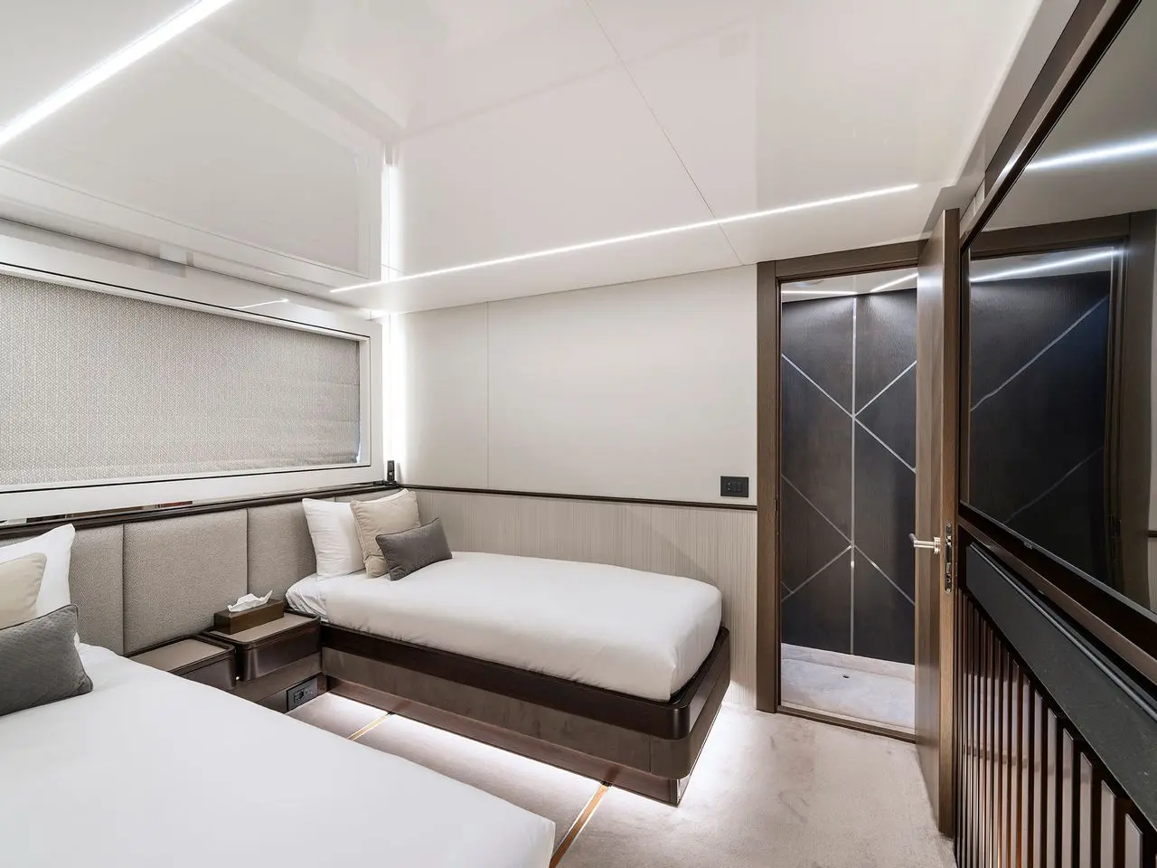 • Port guest cabin to be configured with single berths to slide together to create a double berth. Ensure that bed coverings are ordered for both double and single set up.