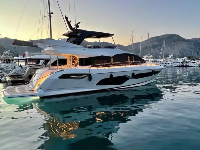 Spartak is a fabulous example of the very popular Sunseeker Manhattan 68. It features a spacious flybridge with a fully equipped wetbar, providing a perfect space for family time while sailing. The stainless steel railing extends from the bow to the sides of the boat, enhancing its aesthetic appeal. The large side windows in the saloon and cabins offer fabulous views over the water, creating a relaxing atmosphere. Don’t miss the opportunity to acquire this outstanding example of Sunseeker. Visits are available with prior notice.