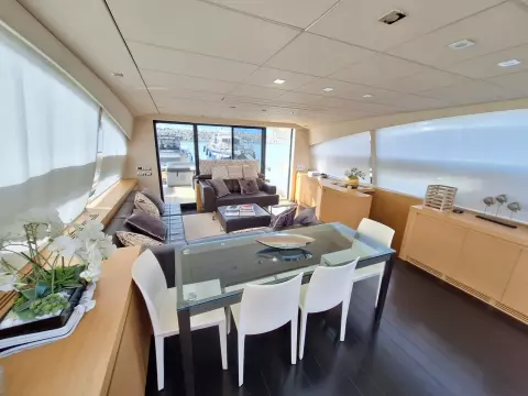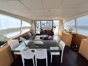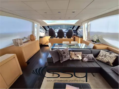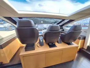 - Forward is the lunch table and the helm with 3 electric Besenzoni seats (Poltrona Frau) and 2