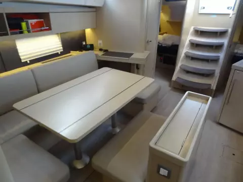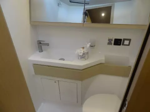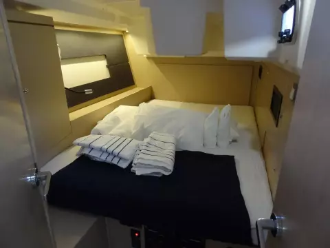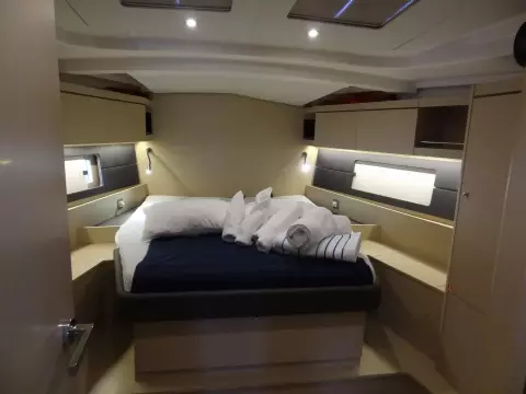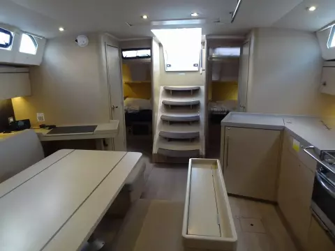 The Moorings 46.3 is boat for demanding owners who are on the lookout for a cruiser which will whet the appetites of both crews and bystanders hanging around the marina. The superb design of the hull is the brainchild of Finot-Conq, the famous naval architects working out of Vannes. They have designed model with a wide-beam, high performance hull, characterized by a novel step one third of the way along, and which is steered by a pair of twin rudders. The uncluttered deck layout and the fact that the hull widens out towards the stern, ensures that the helmsman has a reassuringly clear view of what is going on in front of him. The interior is in the same vein, immediately confirming the impression of quality and good-workmanship created up on deck. The gently sloping companionway ensures safe access down to a bright and modern living space, designed with typically Italian flair for style and comfort by Nauta Design, and which your future crews will certainly be eager to discover.