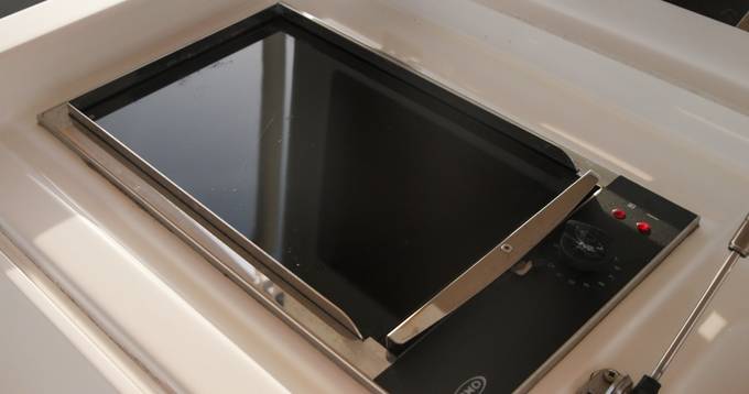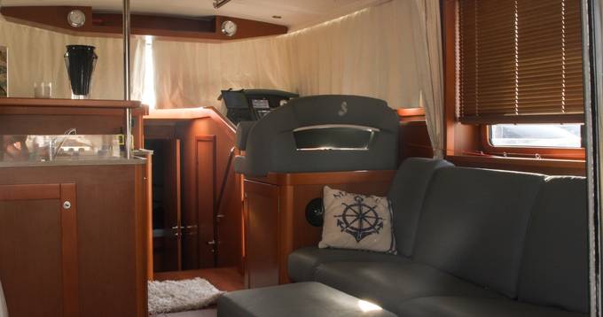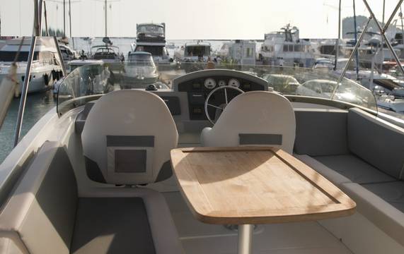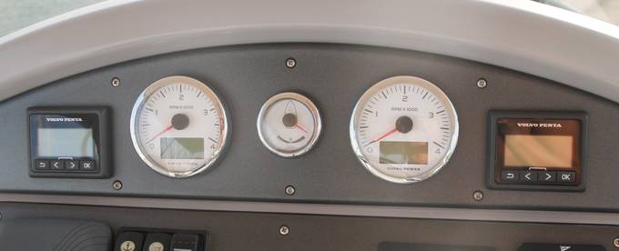 2nd refrigerator, extractor hood, toilet electric, owner cabin, guest cabin, bow cabin, salon, head, steering position inside, steering position on flybridge, fire extinguisher system, shore supply 220V, main circuit breaker, radio, cockpit cover, suncushion, pressurized water system, warm water system, bathing platform integrated, transom door to bathing platform, wetbar, cockpit table, bathing ladder, under water light, 220V plugs, underwater paint, holding tank, engine battery, voltmeter, hob gas, anchor windlass bow electric, anchor windlass stern electric, windscreen wiper w. washer, search light remote controlled, gangway electric, trim tabs, electric/hydraulic, stern shower warm/could, dinghy, satellite TV