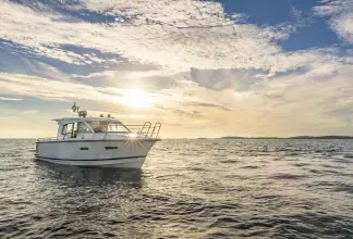 The Nimbus 305 Coupe is suitable for a large cruising area and a long boating season.