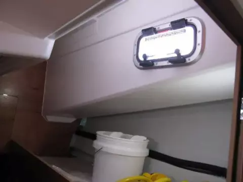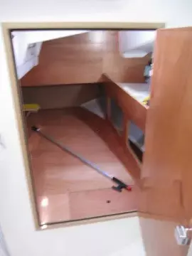 - Storage "garage" aft of head/shower with access from door aft of head/shower & from hatch in cockpit.