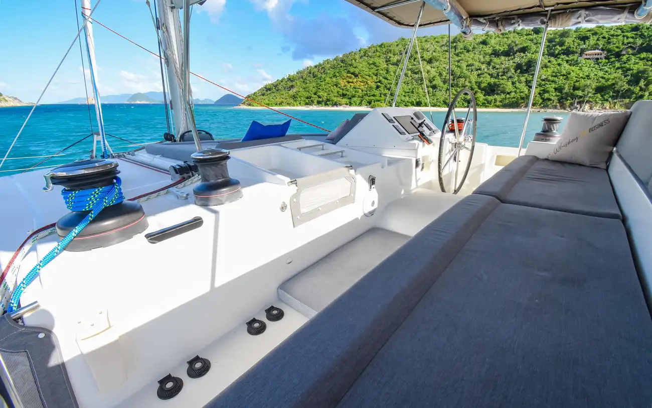 2015 Lagoon 450F | "Whiskey Business" Professionally maintained, U.S. duty paid, Ready for charter or cruising. Step aboard Whiskey Business, a meticulously maintained 2015 Lagoon 450F. As one of Lagoon's most sought after designs, this luxurious and performance-driven catamaran is designed for comfort, independence, and adventure on the open sea. Whiskey Business features a spacious 4-cabin, 4-head layout, providing the perfect balance of privacy and relaxation. This vessel has spent the last five years operating as an owner operator charter vessel with professional care taken by a yacht management company. Between the yachts liveaboard couple and professional maintenance schedule, Whiskey Business has been routinely checked and upgraded to ensure optimum performance. Key Features: Off-Grid Ready - Equipped with a solar power system, watermaker, and extra refrigeration, allowing for extended voyages without relying on shore power. Lithium-Powered Comfort A5 - BattleBorn Lithium battery bank allows you to enjoy the independence of a generator or shore power. Most notably, this battery bank paired with the inverted 220V-12V air conditioning units in the salon and port aft cabin allows the inside of the boat to stay the perfect temperature no matter where you are cruising. Designed for Seamless Sailing A full B&G electronics suite simplifies navigation, while the flybridge, forward and aft cockpits, and plush Sunbrella cushions offer unbeatable relaxation. Meticulously Maintained & Turnkey Ready This catamaran has been carefully upgraded and well cared for, ensuring it's ready for your next sailing adventure. Whether you're looking for a liveaboard escape, an island-hopping dream, or a reliable charter investment, Whiskey Business is ready to set sail. Contact us today to learn more and schedule a viewing!