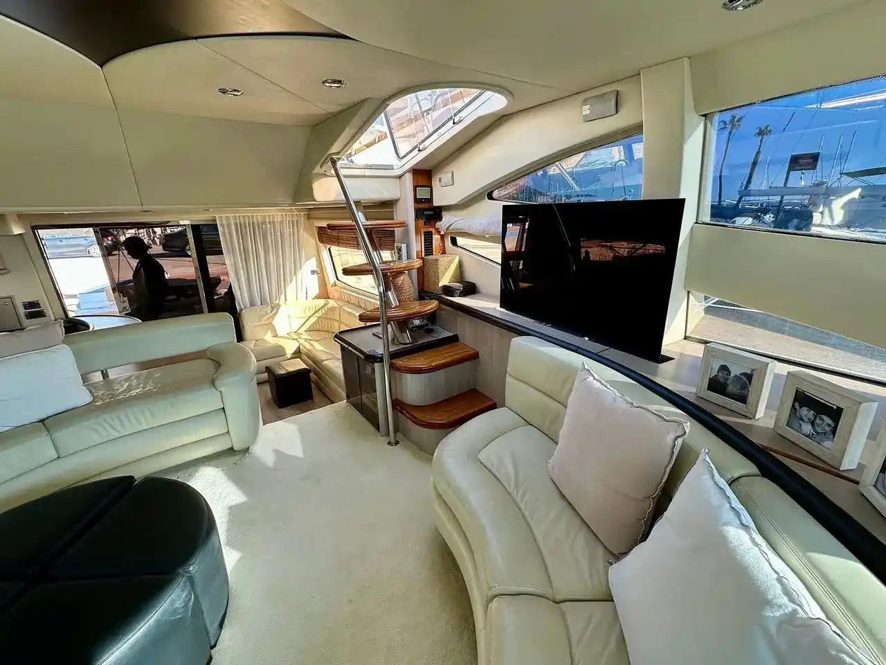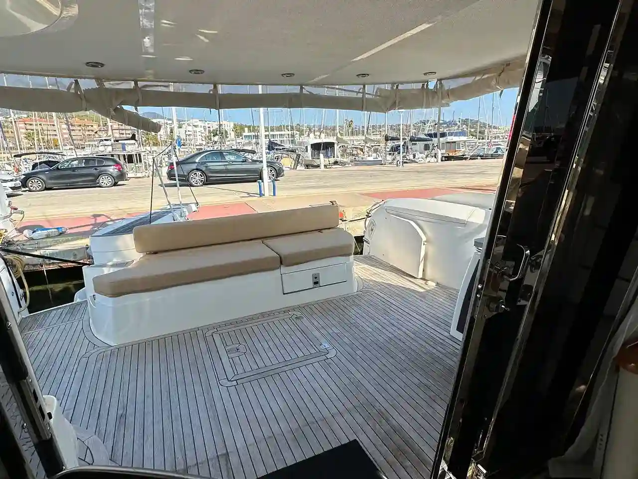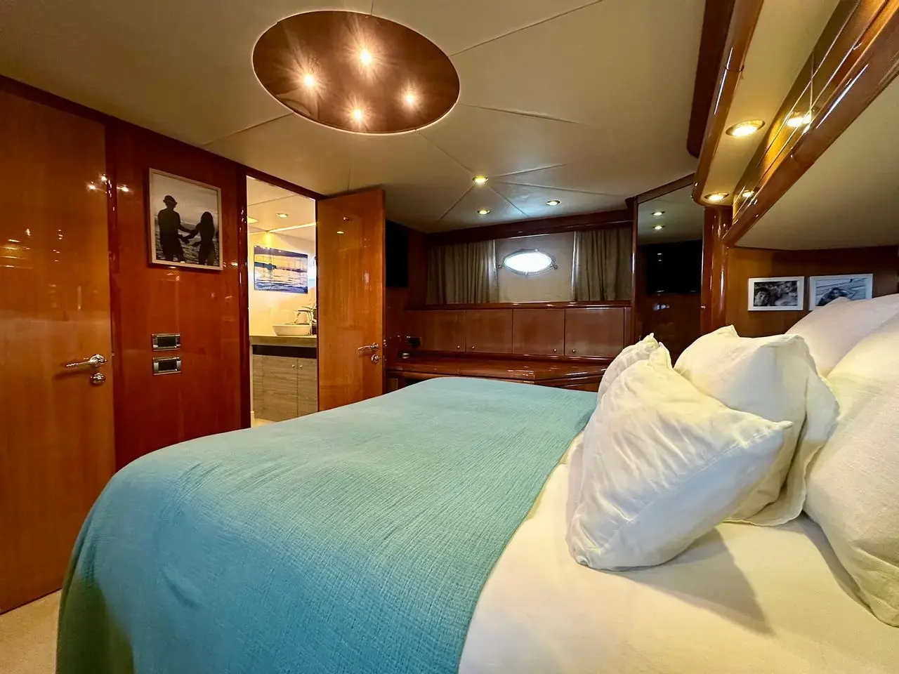 Her incredible layout is perfect for entertaining with an abundance of seating bow to stern and generous accommodations below. The three stateroom ensuite configuration consists of a full beam Master midship, VIP forward, and ample twin stateroom to port. A washer dryer combination unit is conveniently concealed behind the high gloss cabinetry in the lower level. The galley is set inside to starboard as you enter the interior with a dual level salon arrangement and all the luxurious appointments imaginable. A refit with covering has been done to look more fresh and recent.