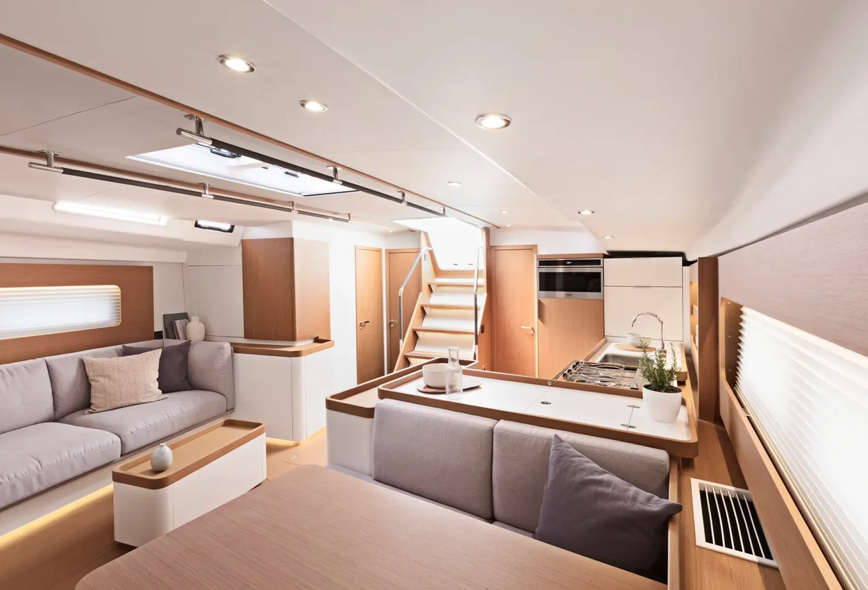 The Beneteau First 53 combines elegance and performance in an exceptional design. Perfect for those passionate about sailing, this boat offers an unrivalled cruising and racing experience. With 3 well laid out cabins and 2 bathrooms, it offers comfort and functionality. Equipped with a classic aluminium mast and dark grey North Sails sails, along with additional features such as electric winches, bow and stern thruster, this boat is ready to set sail immediately. Folding and convertible cockpit sunbathing tables and other premium features make this boat a jewel for enjoying the sea at its best.