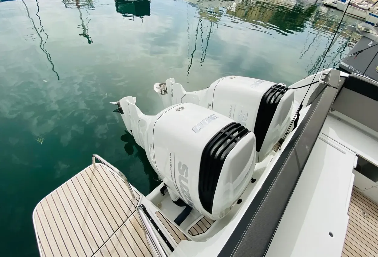 Exclusive to RIVIERA PLAISANCE and EURO-VOILES! Discover this 2022 MERRY FISHER 1095 FLY equipped with SUZUKI DF300 APXX ELECTRIC CONTROLS totaling 60 hours. First owner, launched in 2023, owner's boat perfectly maintained with only 50 hours of navigation.