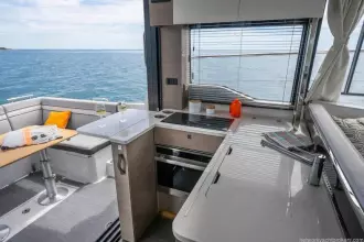 The Jeanneau 1295 Fly, powered by 3 x 300hp Yamaha engines with joystick control, offers an exceptional spec including a generator, Seakeeper gyroscopic stabiliser, air conditioning, upgraded Garmin electronics, Fusion audio system, and more. Featuring luxurious comfort packs, mooring and anchoring kits, and high-end finishes throughout, this boat is fully equipped for ultimate cruising.