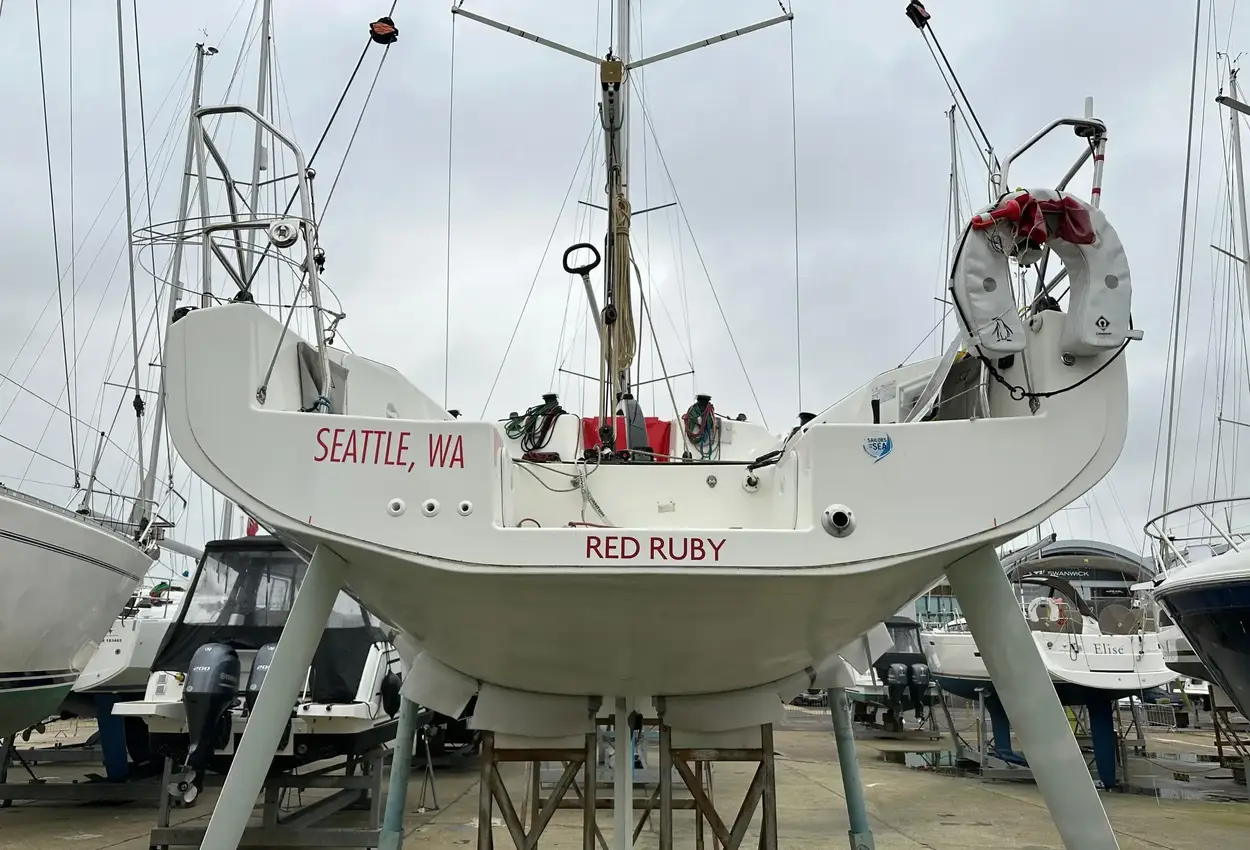 RED RUBY is a fully race-ready Verdier/Andrieu designed Sun Fast 3300, equipped with all required safety equipment, racing sails in good condition, delivery sails, and numerous spares. Upgrades include a Keel Camera, runners clutches, E-Bar rudder toe-in control, Cyclops Load Sensor, Iridium GOe antenna and charger, and much more.