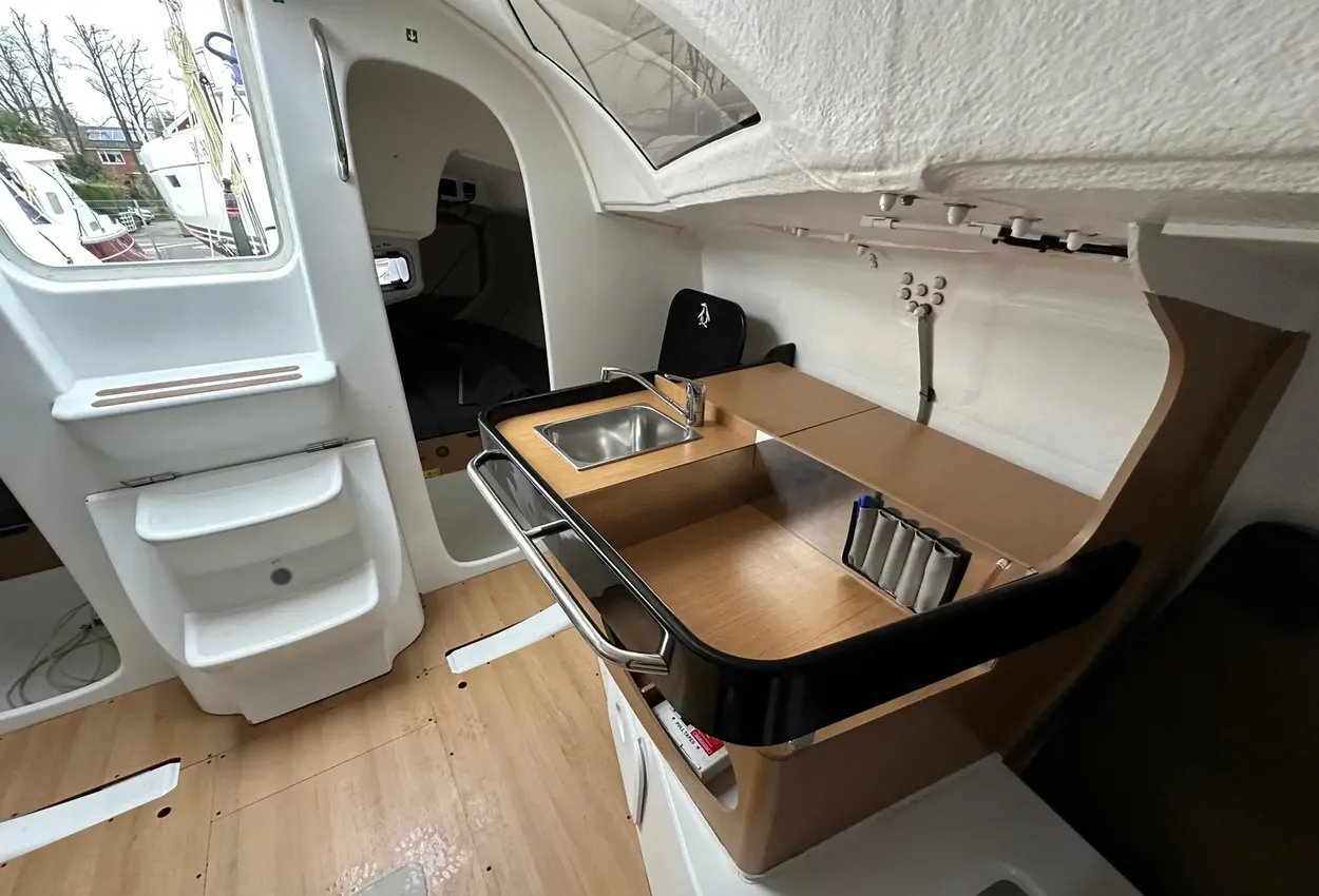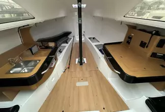 - 2-burner gimballing gas hob (gas bottle locker in cockpit)