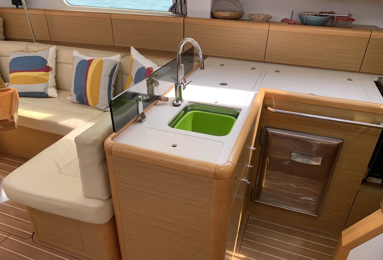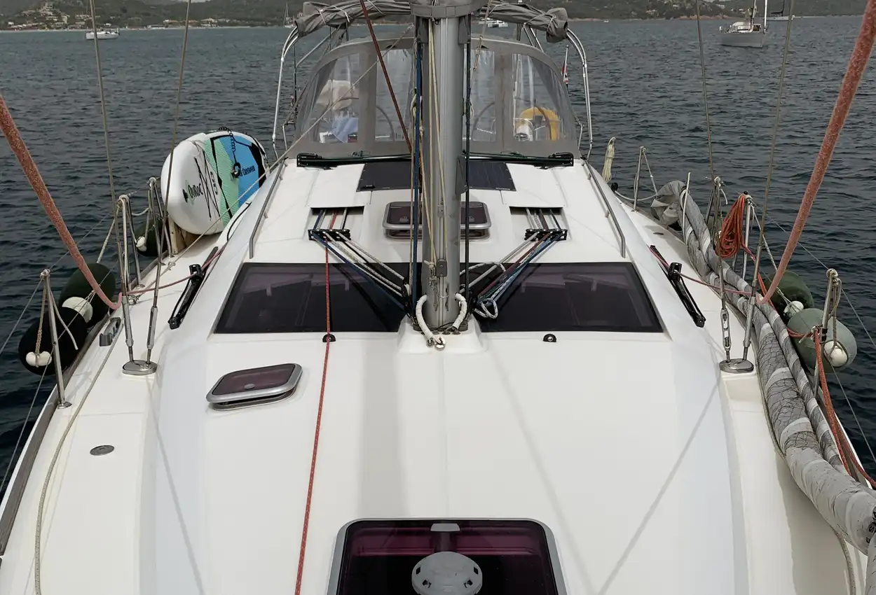 The powerful hull lines of the Sun Odyssey 45 DS were perfected by Naval Architect Philippe Briand to ensure exceptional stability and comfort at sea.
