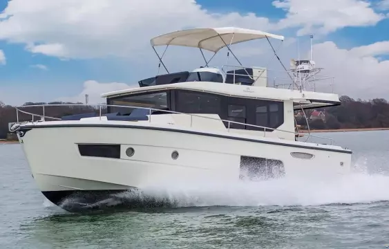 Powerful and spacious Eco Trawler 43 with large flybridge and comfortable cabins. Still with her first Owner and never chartered. Very spacious with high commodities. Her 2 x 380hp IPS500 Volvo engines can take you anywhere in no time. Equipped with a lot of extras (Generator, A/C, Radar, etc.)