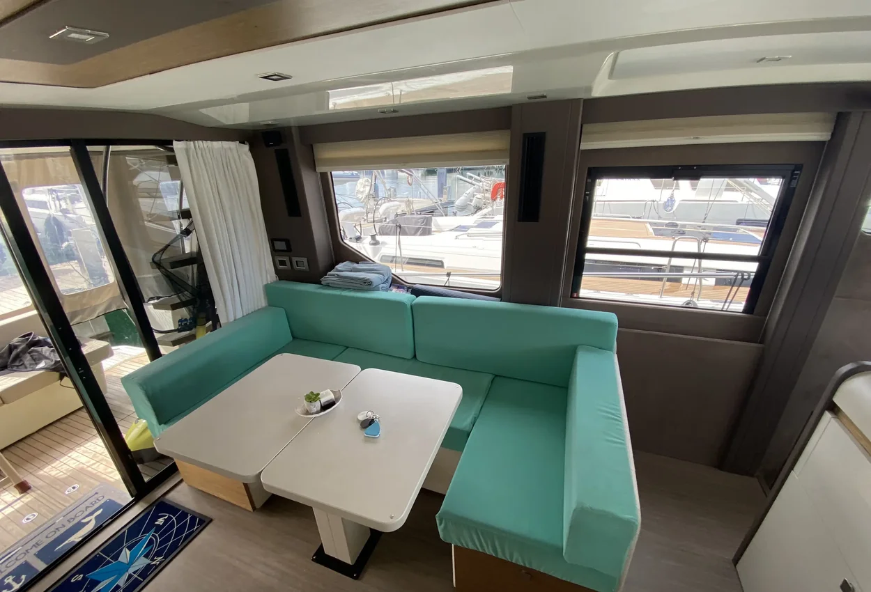 - Spacious saloon with U-shaped sofa and table