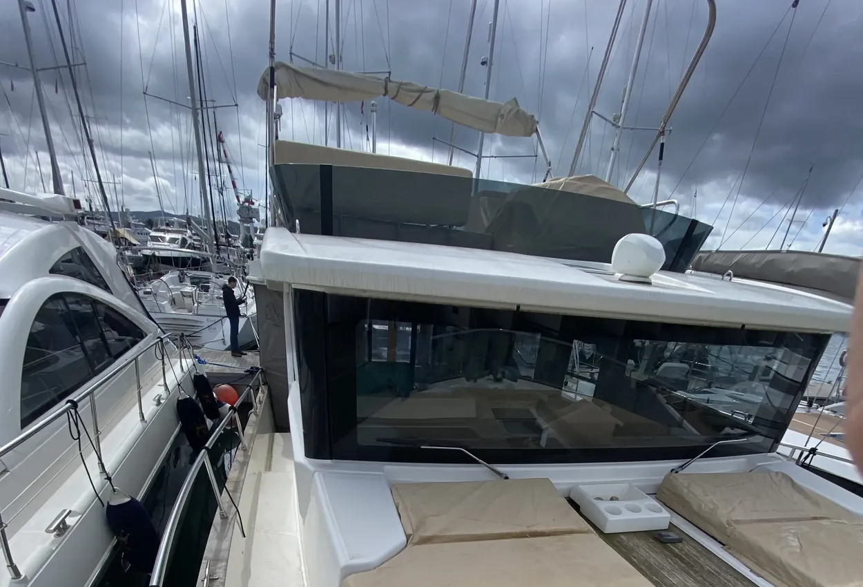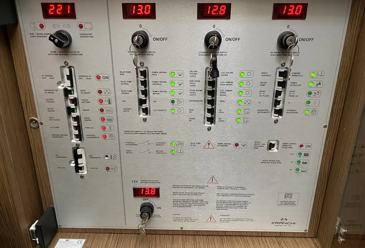 - Speakers - 4 in saloon, 2 on fly bridge, 2 on fwd sun deck, 2 on aft deck