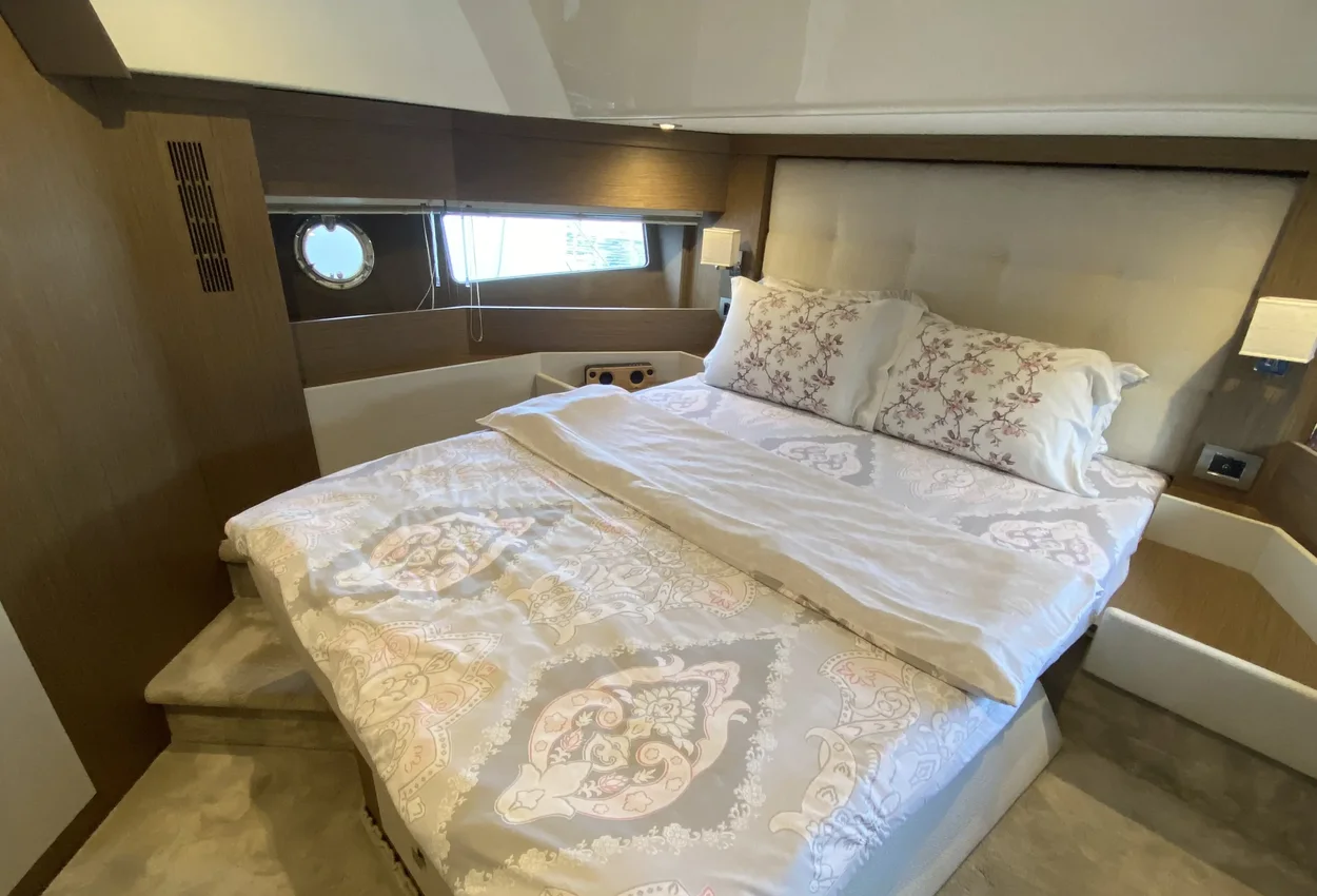 - Master cabin, with double bed, head, hanging locker