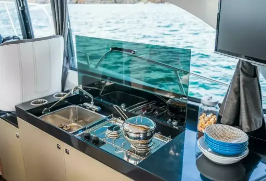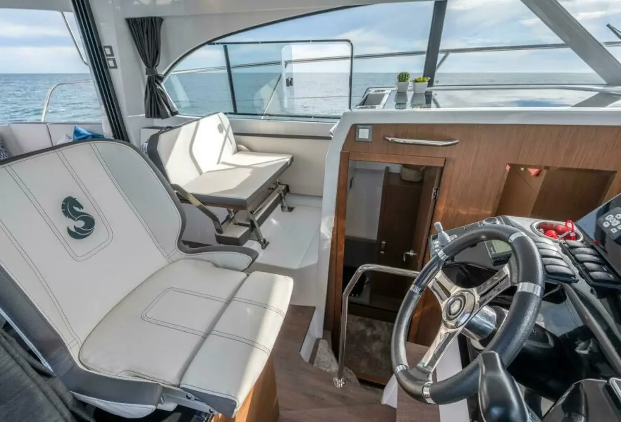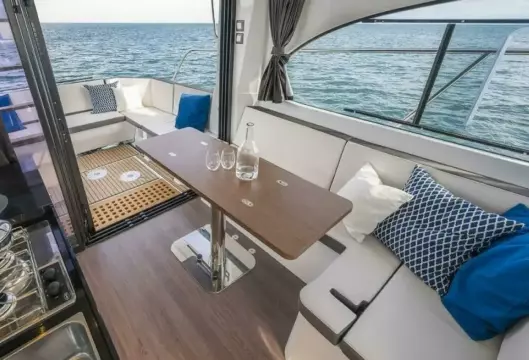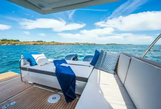 - An aft sun bench, a side swim platform creating a sea-view terrace, and an aft cockpit that flows naturally into the wheelhouse.