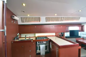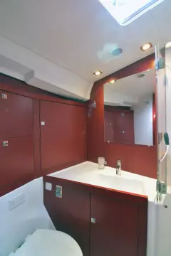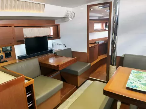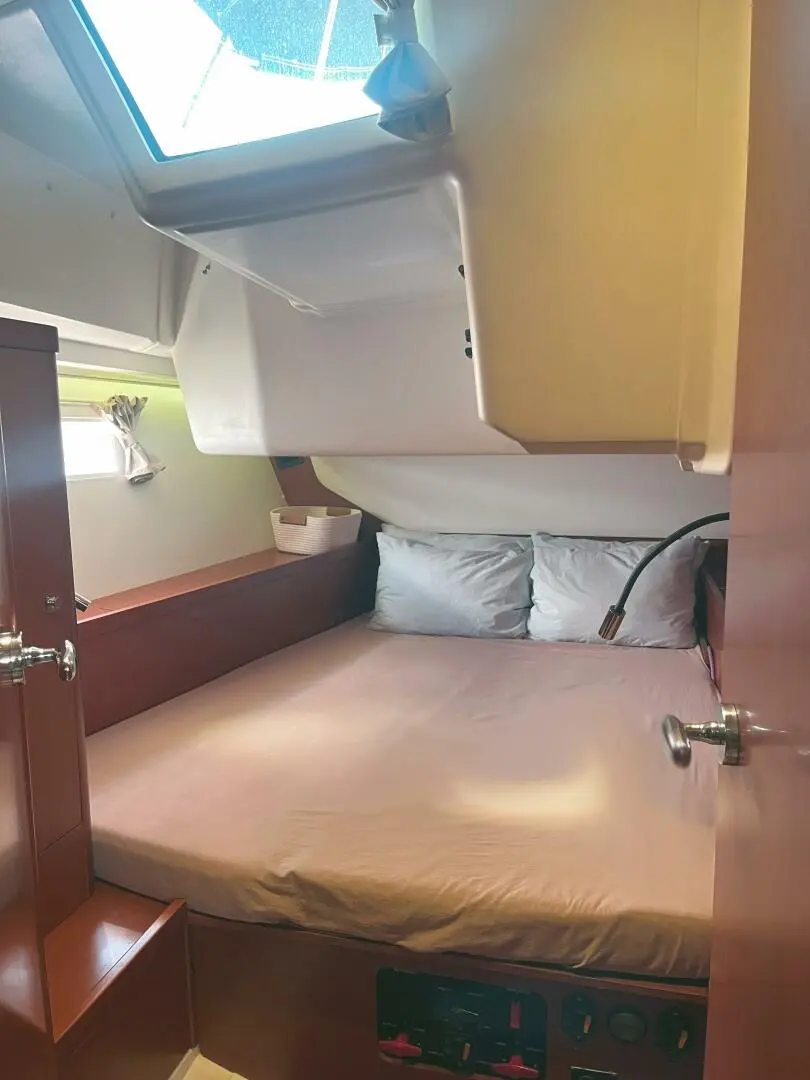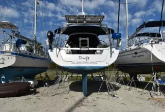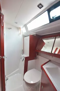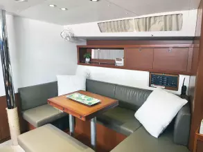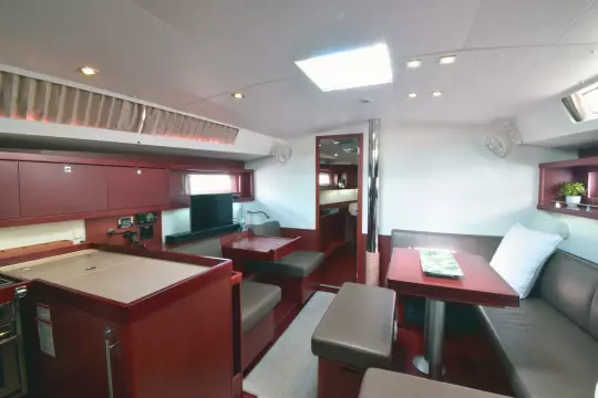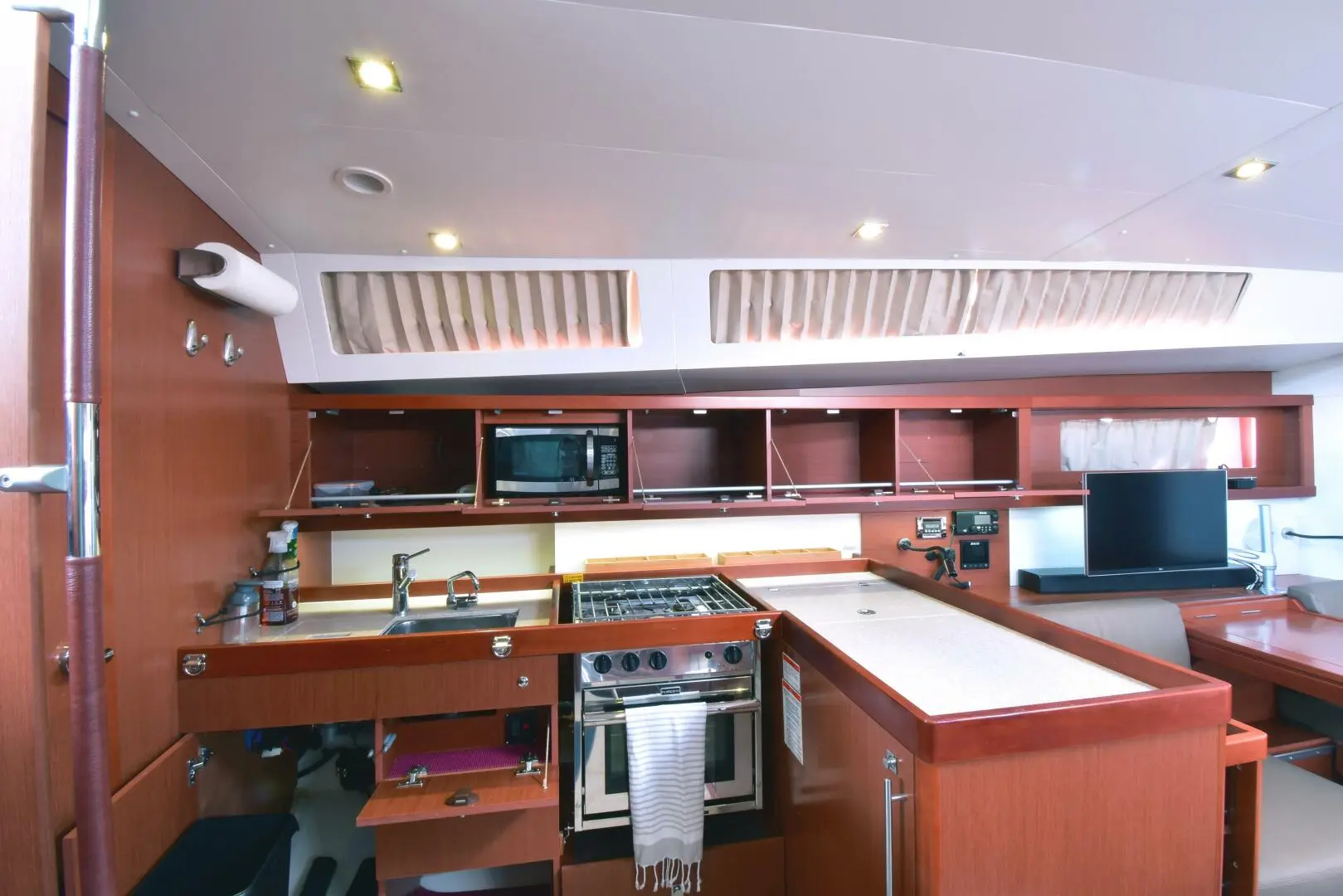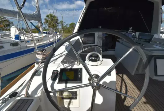 One of Beneteau's most successful models, the Oceanis 45 provides a trendy European look inside and out, with impressive performance, even with the shorter ICW rig and the shoal draft keel. DRIFT is a two-cabin boat with the third cabin converted into a machinery space for the generator, watermaker controls, and tool storage. With the mahogany interior, upgraded UltraLeather seating, and TemperPedic mattress in the owner's cabin, this boat lives as well as it sails. Awarded European Boat of the Year in 2012, this boat is a real winner in every way.