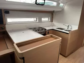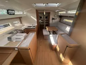 With her powerful hull, walkaround decks, and award-winning design by Philippe Briand and Jean-Marc Piaton, this Sun Odyssey 440 offers effortless sailing and exceptional onboard living.