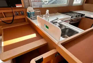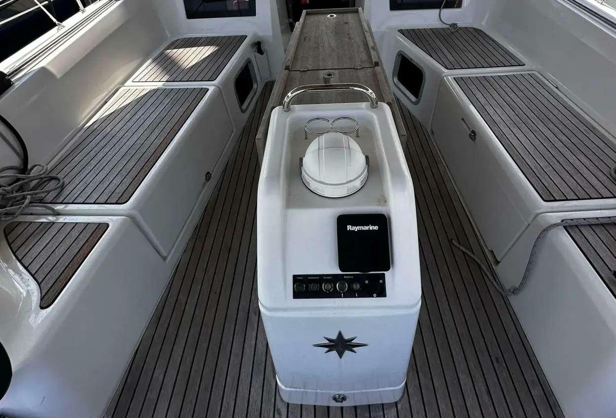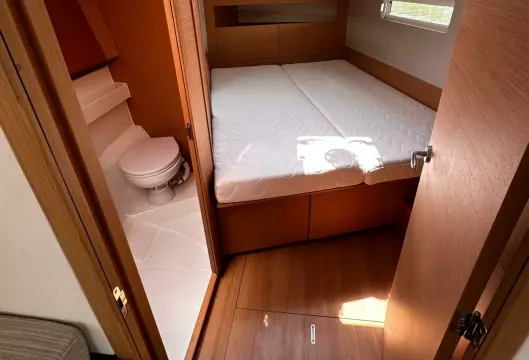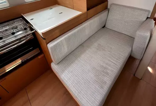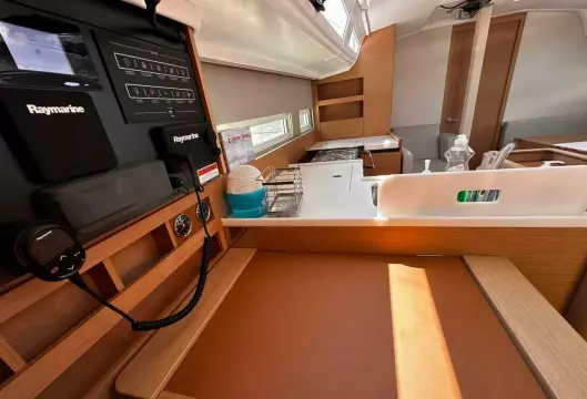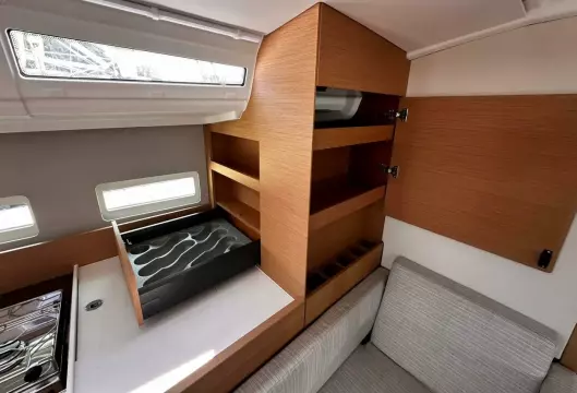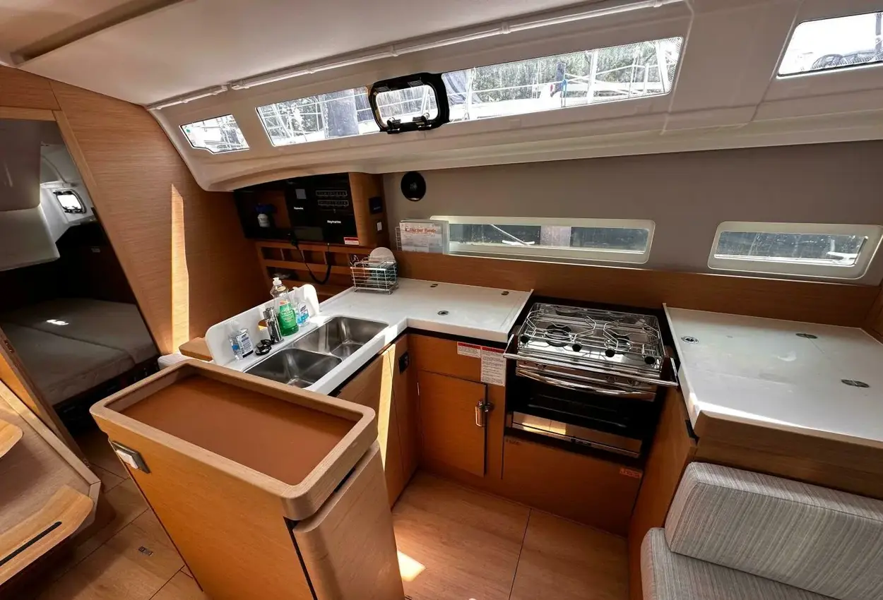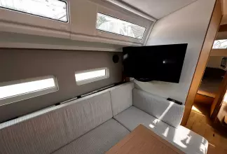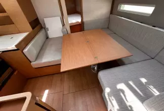 The ergonomic design of the Sun Odyssey 410 ensures your well-being on board. From the secure and comfortable cockpit to the warm and inviting interior saloon, every space is optimized for relaxation and enjoyment. Transform the cockpit into an exterior saloon or sundeck while at anchor, and create lasting memories with your family and friends in the spacious living areas.