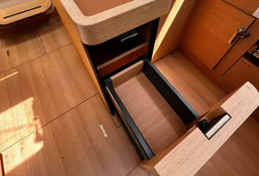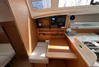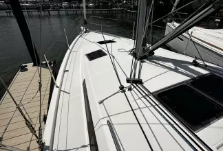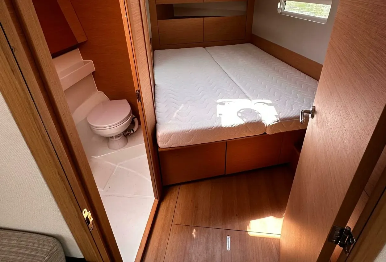 Featuring a 2 Cabin/1 Head Layout with a vanity in the owner's cabin, workshop storage for long-distance cruising, and a genset for comfort, the Sun Odyssey 410 offers unmatched versatility. Embark on extended expeditions with ease, knowing that this sailboat is equipped to handle all your storage needs while providing ample space for rest and relaxation.