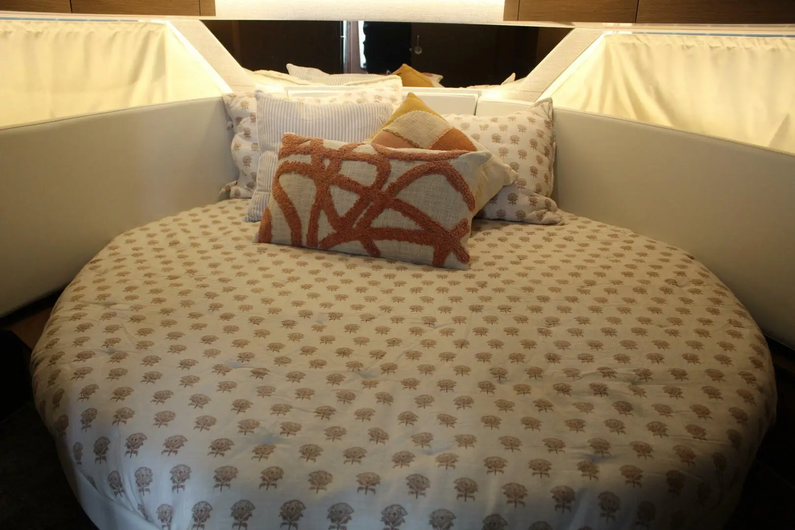 The flybridge includes a forward sundeck and a folding copilot bench seat. The bench seat can be transformed into a sun lounger or an XXL sundeck, according to preference! This area also includes numerous storage compartments plus an optional bimini for sun protection.