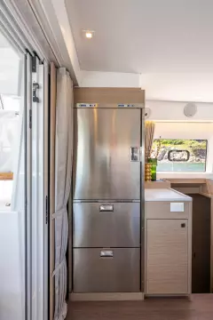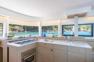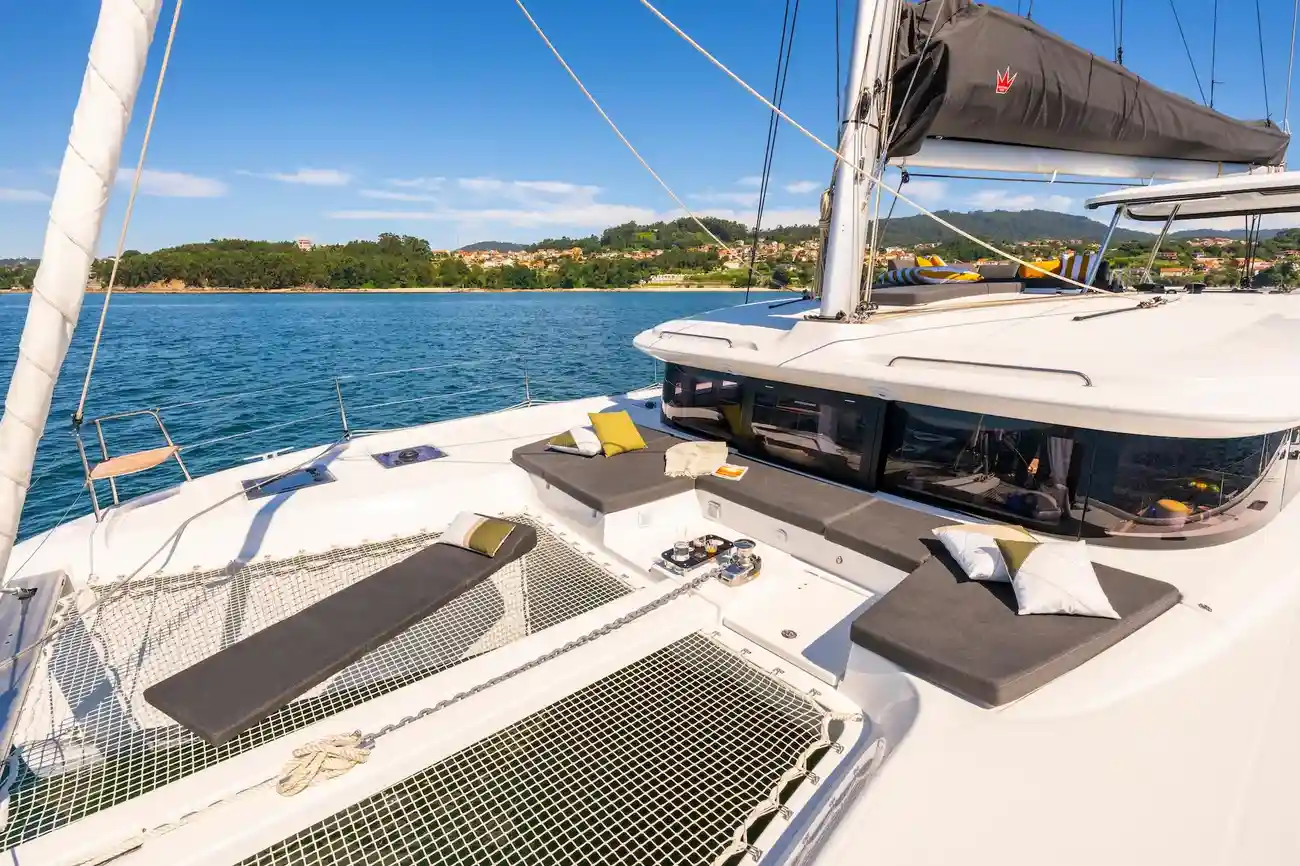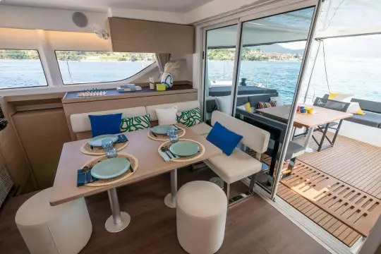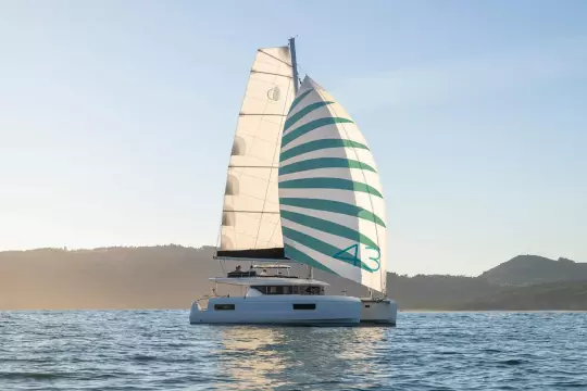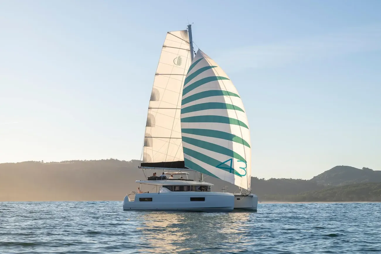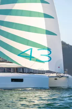 A CATAMARAN ADAPTABLE BY NATURE The Lagoon 43 promises unforgettable sea moments. Ideal for escapes, family adventures, or stylish gatherings, this versatile catamaran combines elegance and innovation, adapting seamlessly to your lifestyle for an exceptional yachting experience. AWARDS European Yacht of the Year 2025 - Nominee Boat of the year - Cruising World - Nominee A CATAMARAN WITHOUT LIMITS The Lagoon 43 redefines spacious living on the water with its innovative hull design, delivering unmatched interior volumes for its category. Every cabin has been thoughtfully crafted to provide greater dimensions, featuring larger berths and enhanced comfort, ensuring boundless versatility for any voyage. In the owner's cabin, a forward berth of generous proportions is complemented by an ensuite head and aft shower, creating a private retreat reminiscent of much larger yachts. Cleverly designed to minimize engine noise, this layout elevates onboard tranquility, offering a living experience without limits in comfort and sophistication. A THOUGHTFULLY DESIGNED CATAMARAN Lagoons latest model introduces a groundbreaking feature: an additional aft entryway for each hull, redefining accessibility on board. This innovation enhances the ease of movement between the boat and the dock, prioritizing both comfort and safety to elevate the onboard experience. Thoughtfully engineered, this new access point is seamlessly integrated into the sleek lines of the catamaran, preserving its iconic design while offering practical benefits. By combining aesthetics with functionality, Lagoon sets a new benchmark in yacht design, ensuring that every moment aboard is marked by effortless convenience and refined elegance. A CATAMARAN THAT EVOLVES WITH YOU Lagoon has redefined the concept of onboard living with a highly adaptable catamaran, designed to seamlessly integrate modular spaces. This innovation allows you to effortlessly transform the layout, blending the interior and exterior, the saloon and the cockpit, based on your preferences and needs. The design empowers you to create various configurations with ease, including a dining area that comfortably seats up to 12 guests. This thoughtfully designed space fosters connection, offering an elegant environment for shared moments with family, friends, or colleagues.
